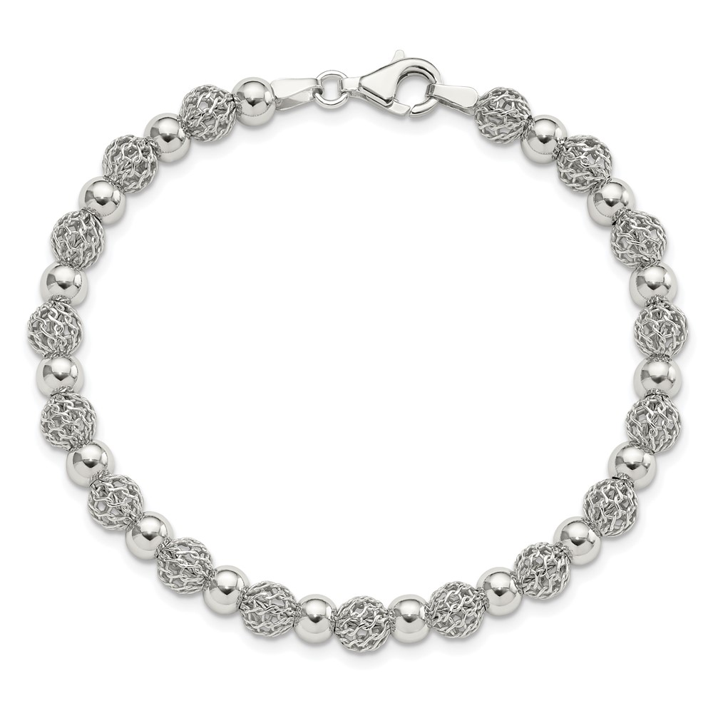 Sterling Silver Rhodium-plated Polished Beaded 7.5in Bracelet