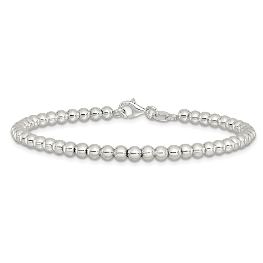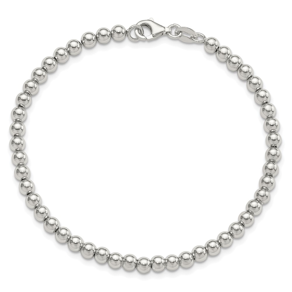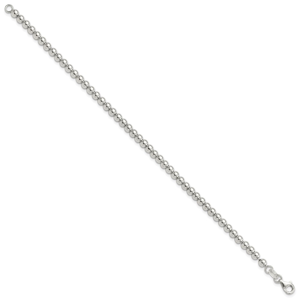 Sterling Silver Rhodium-plated 4mm Beaded 7.5in Bracelet