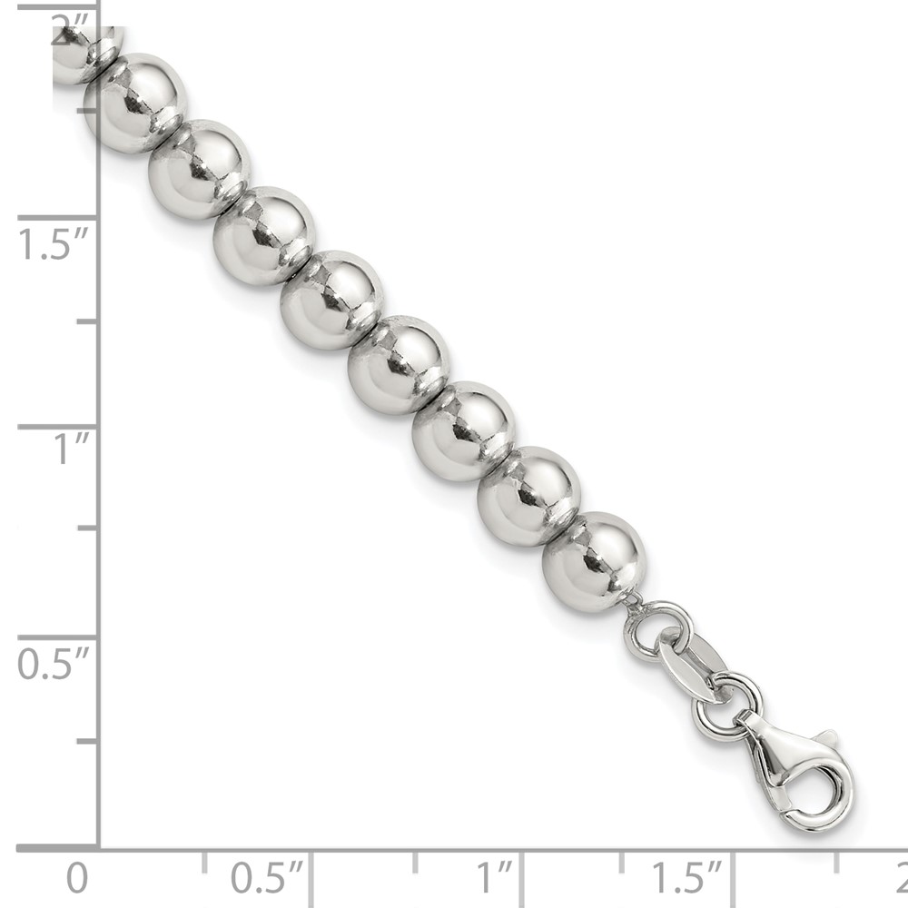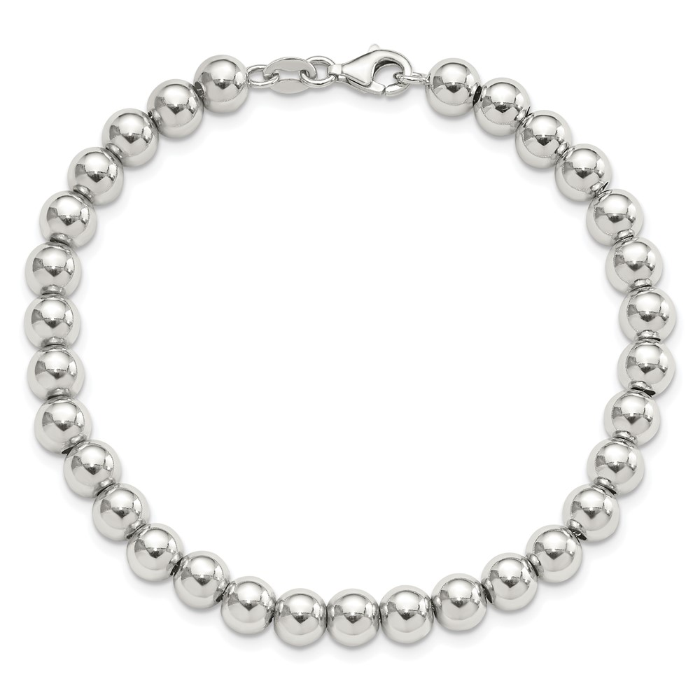 Sterling Silver Rhodium-plated 6mm Beaded 7.5in Bracelet