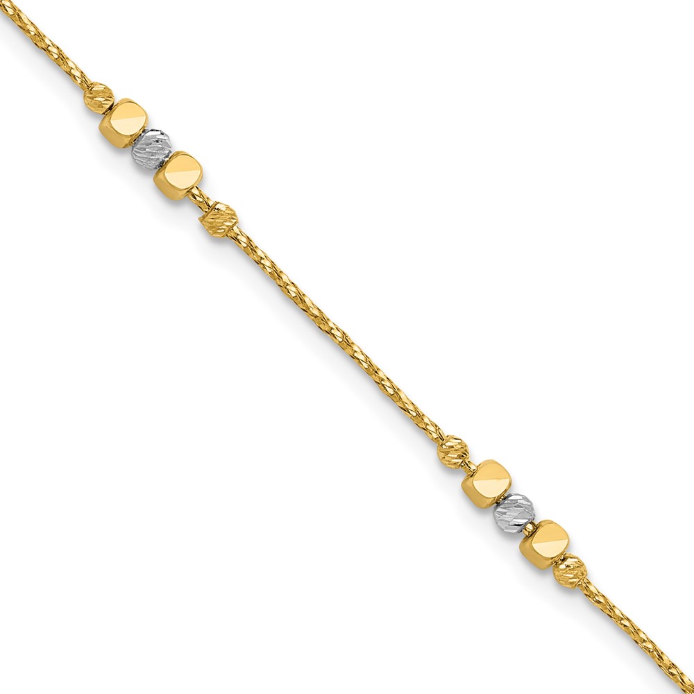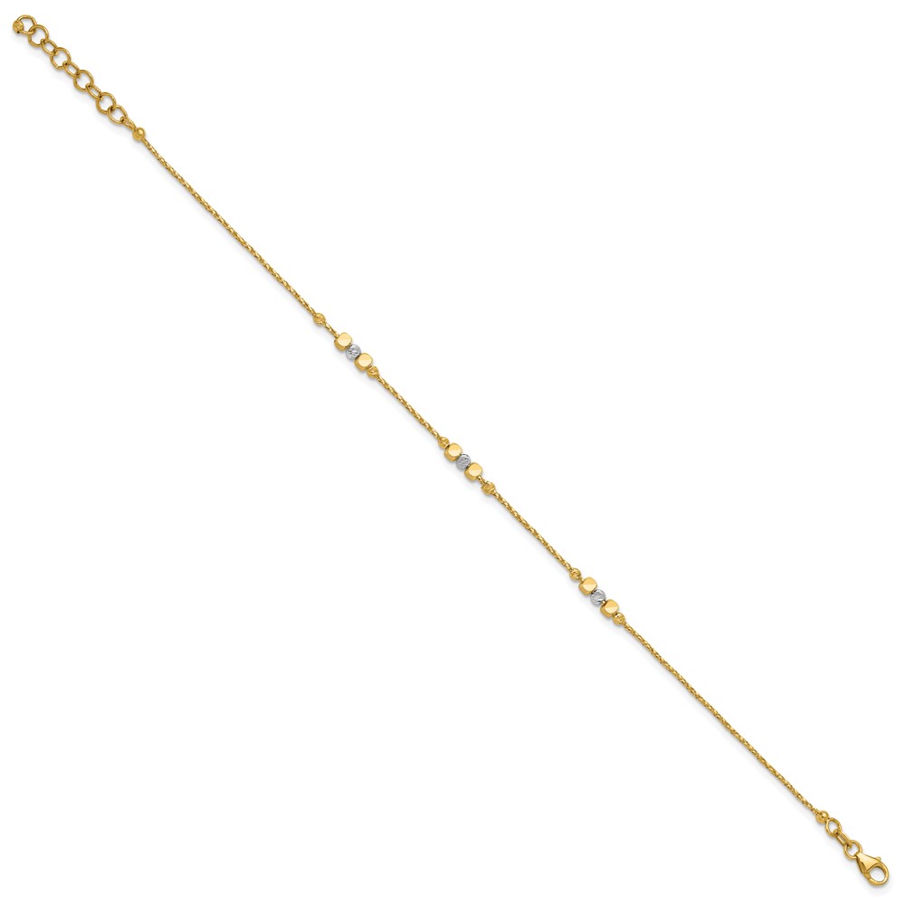 Leslie's 14K Two-tone Pol/Texture/Dia-cut Beads w/1in ext. Bracelet