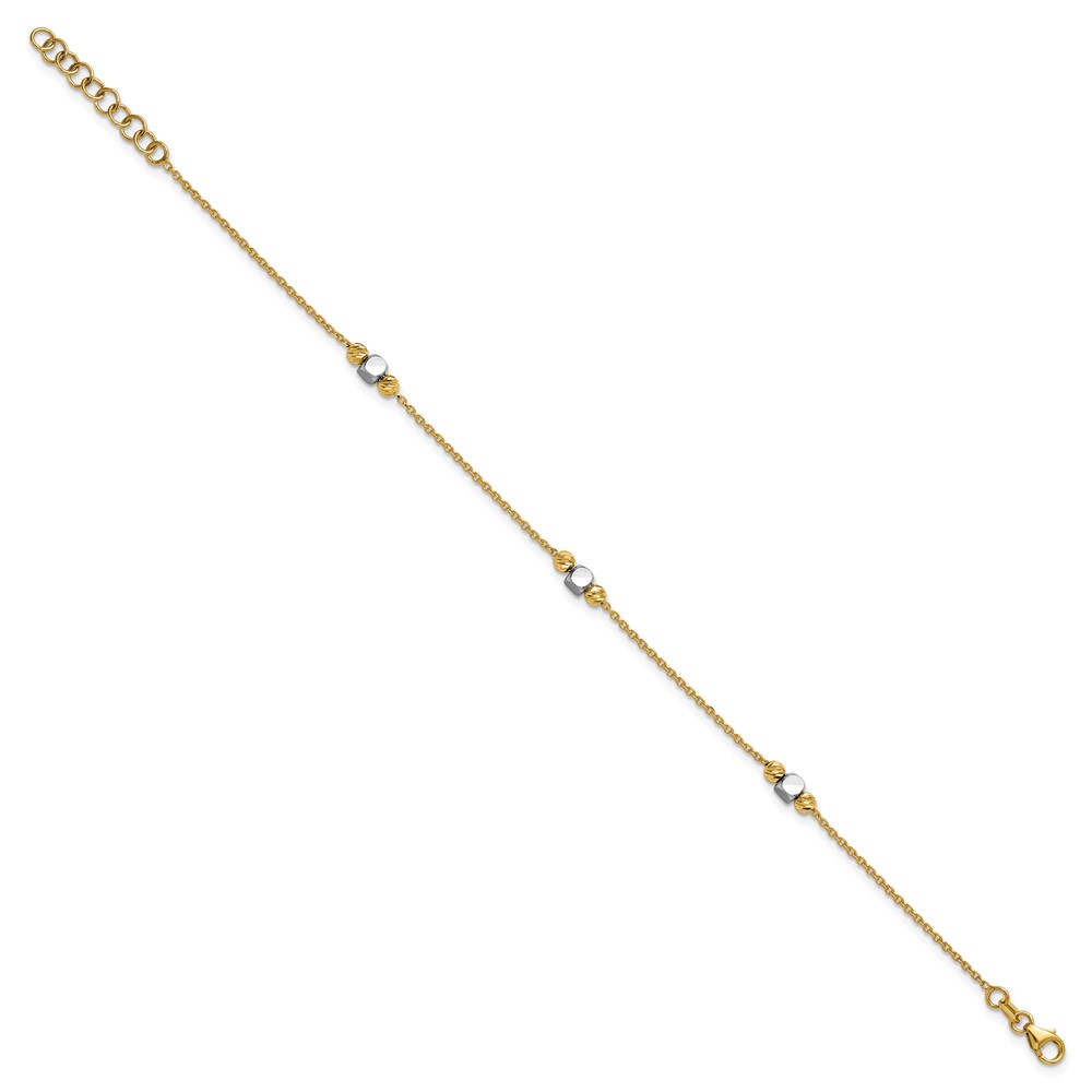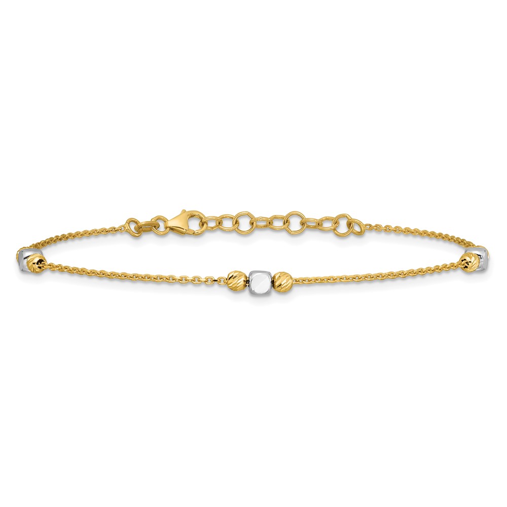 Leslie's 14K Two-tone Polished / Dia-cut Beads w/1in ext. Bracelet