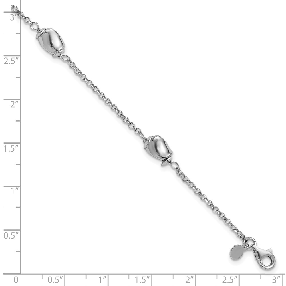 Leslie's Sterling Silver RH-plated Polished Beads w/1in ext. Bracelet