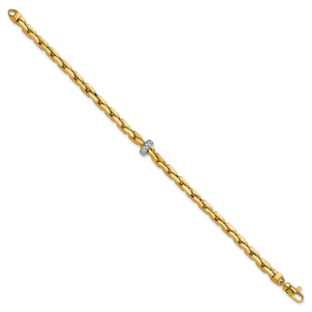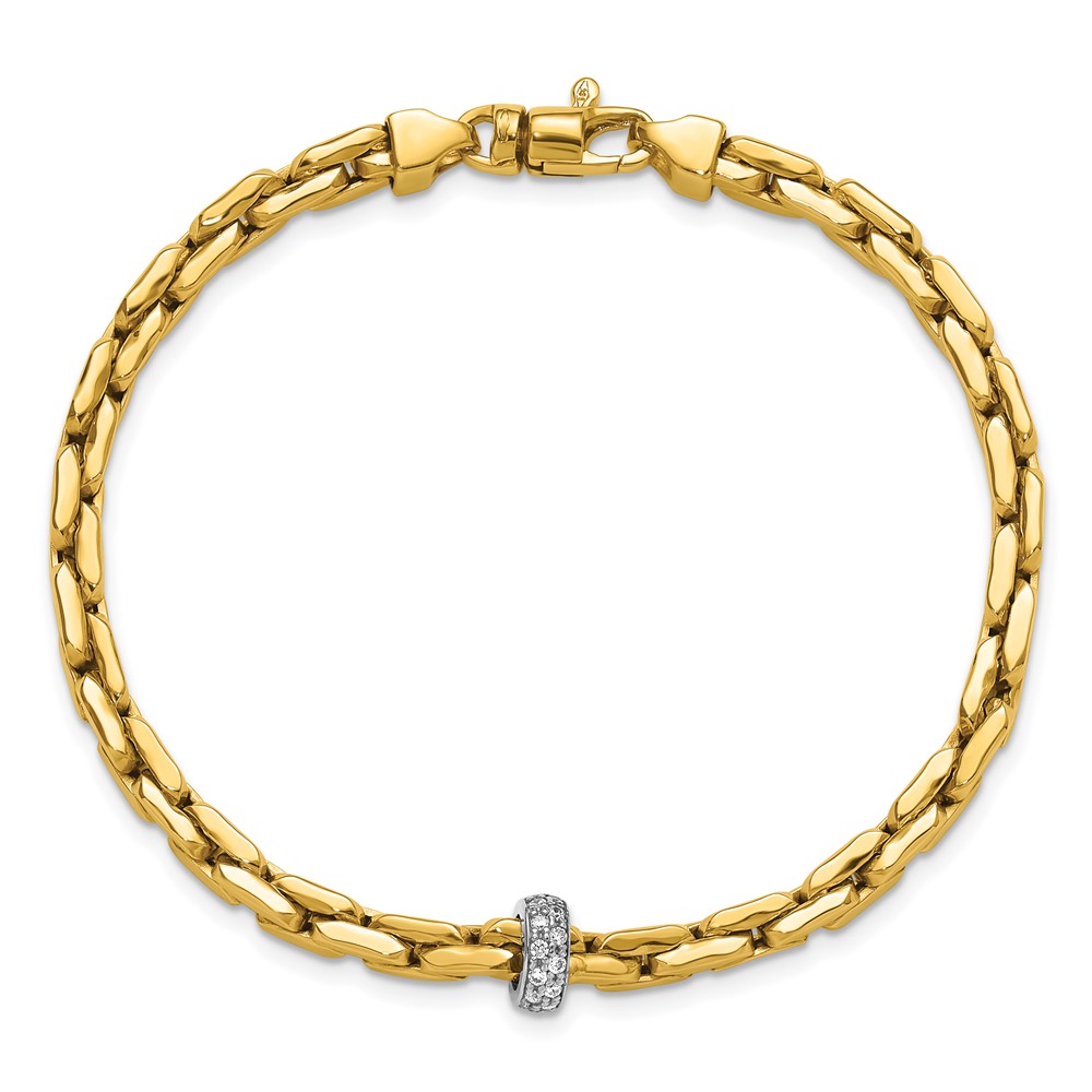 14K Two-tone Polished Fancy Link with CZ Bead 7.5 inch Bracelet