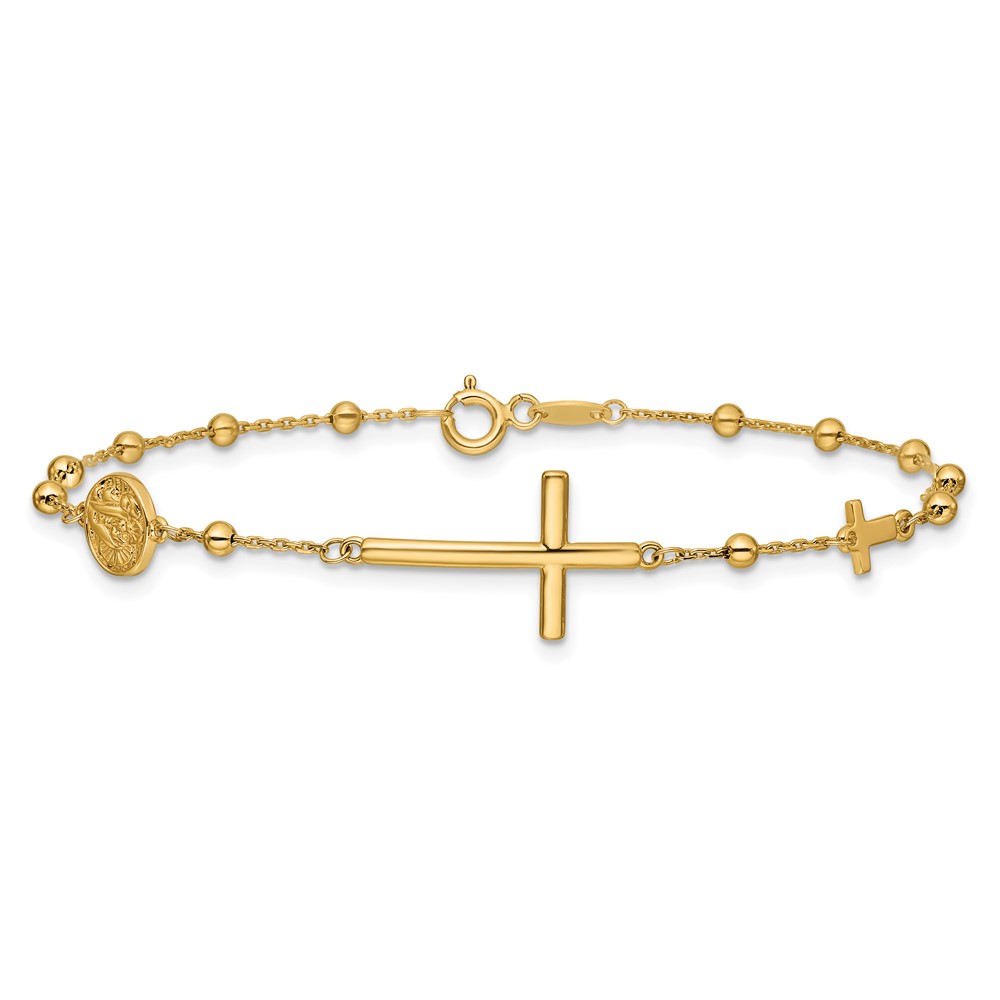 Leslie's 14K Polished Cross and Beaded Bracelet