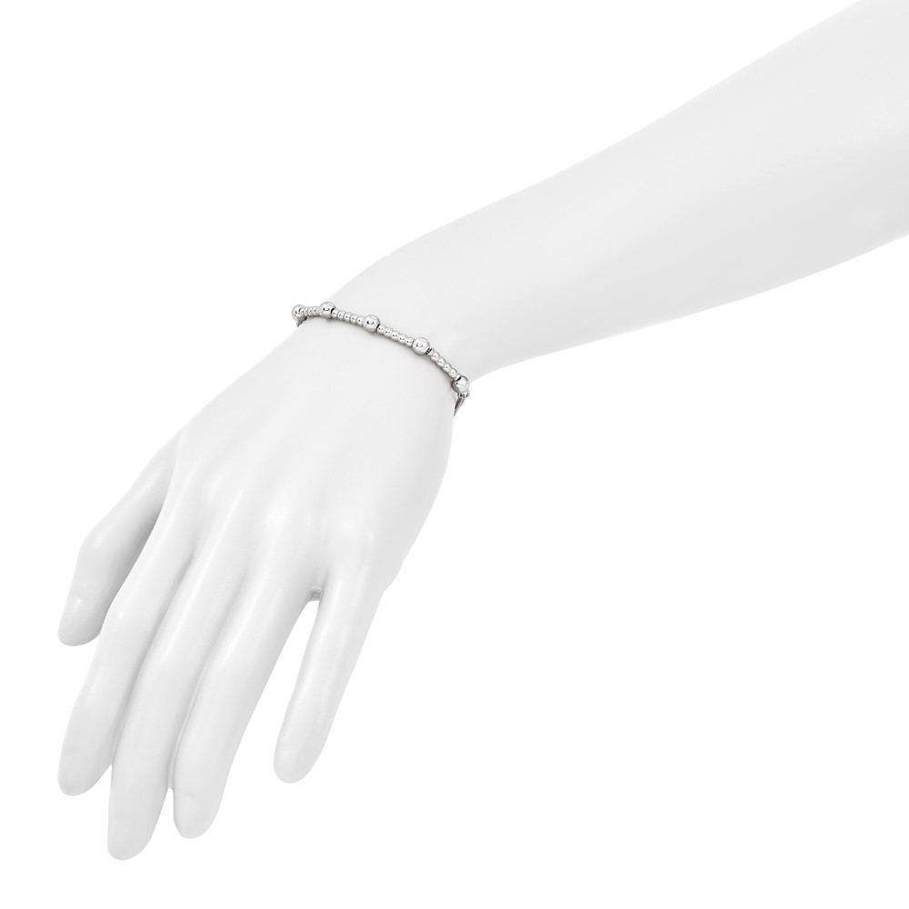 Leslie's Sterling Silver RH-plt Pol. 2-strand Beaded w/1in ext. Bracelet