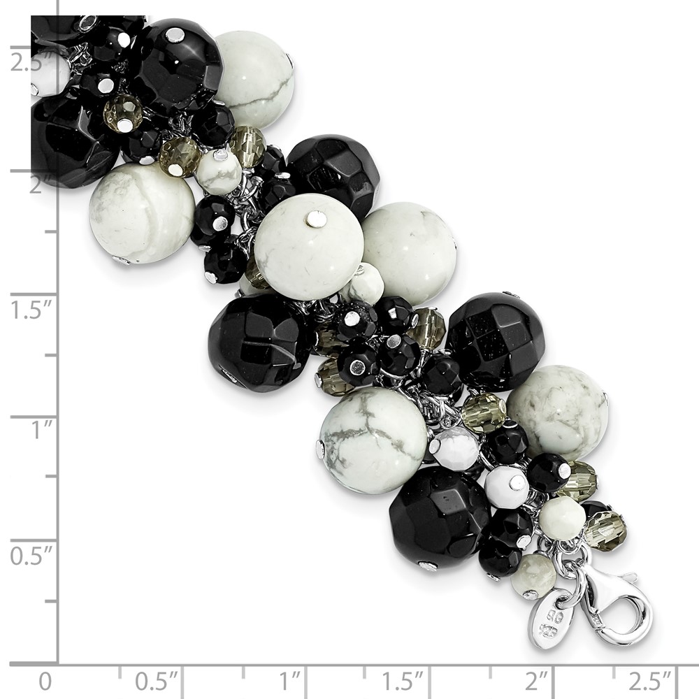 Sterling Silver Howlite/ Black & Smoky Quartz Crystal Bracelet