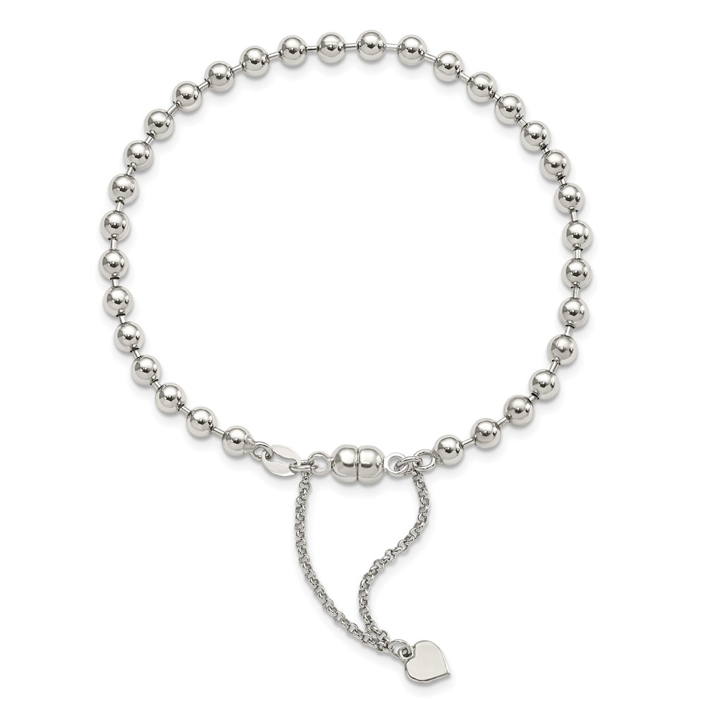 Amore La Vita Sterling Silver Rhodium-plated Polished 4MM Beaded Dangling Heart 7.5 inch Charm Bracelet with Magnetic Clasp