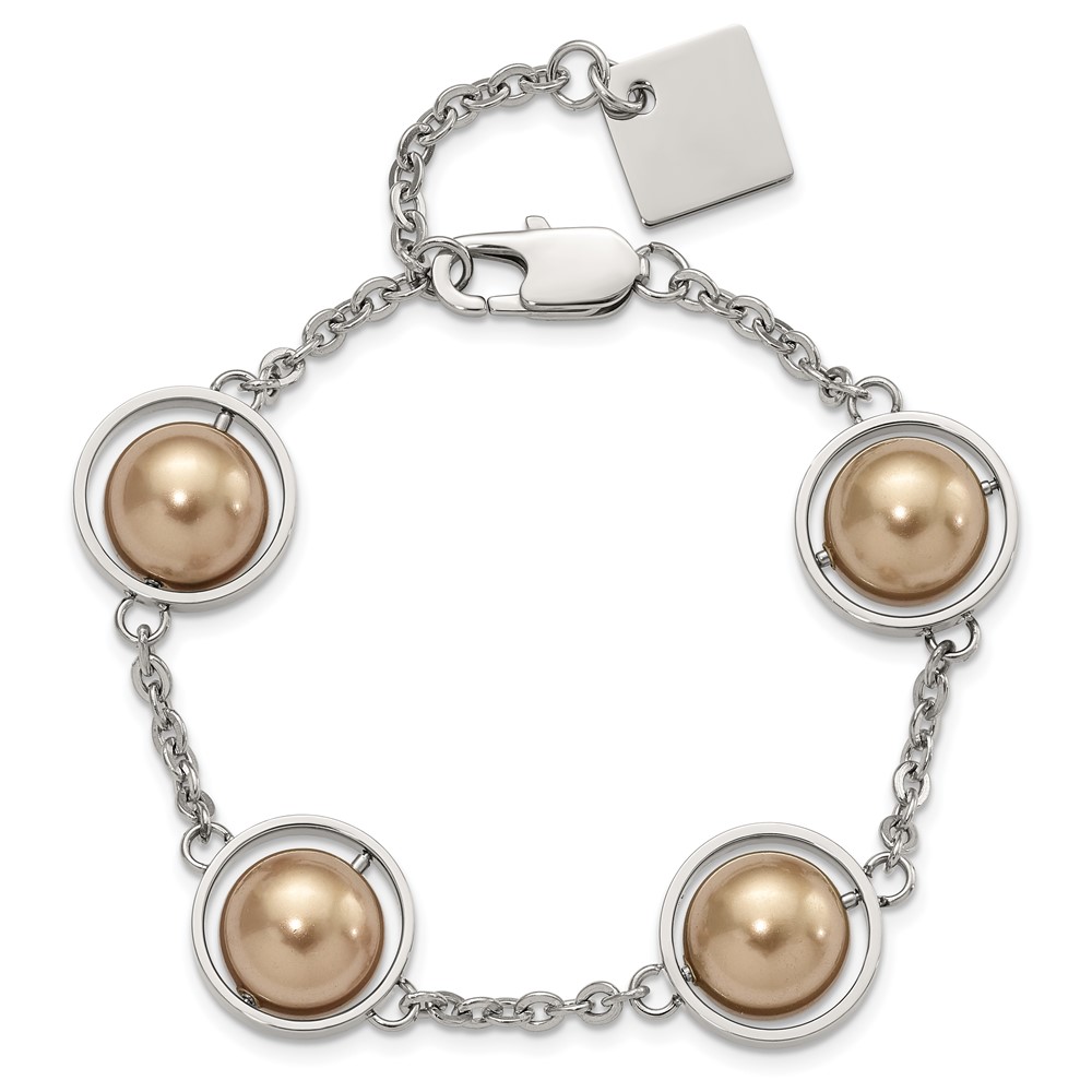 Stainless Steel Polished Champagne Beads w/1in ext Bracelet