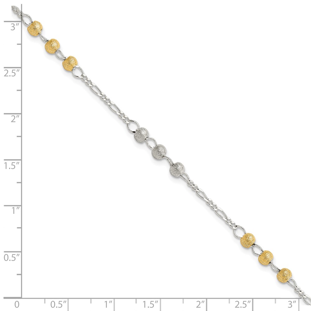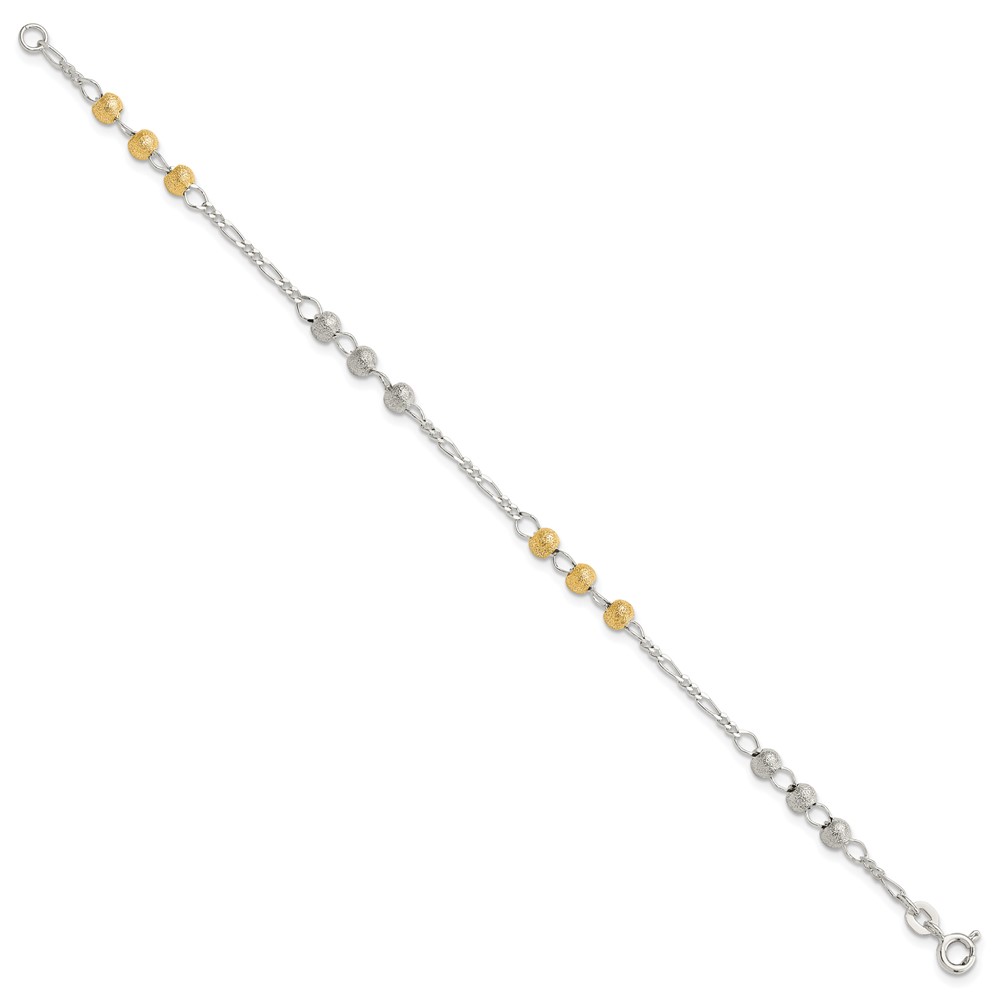 Sterling Silver Gold-tone Textured Beaded Bracelet