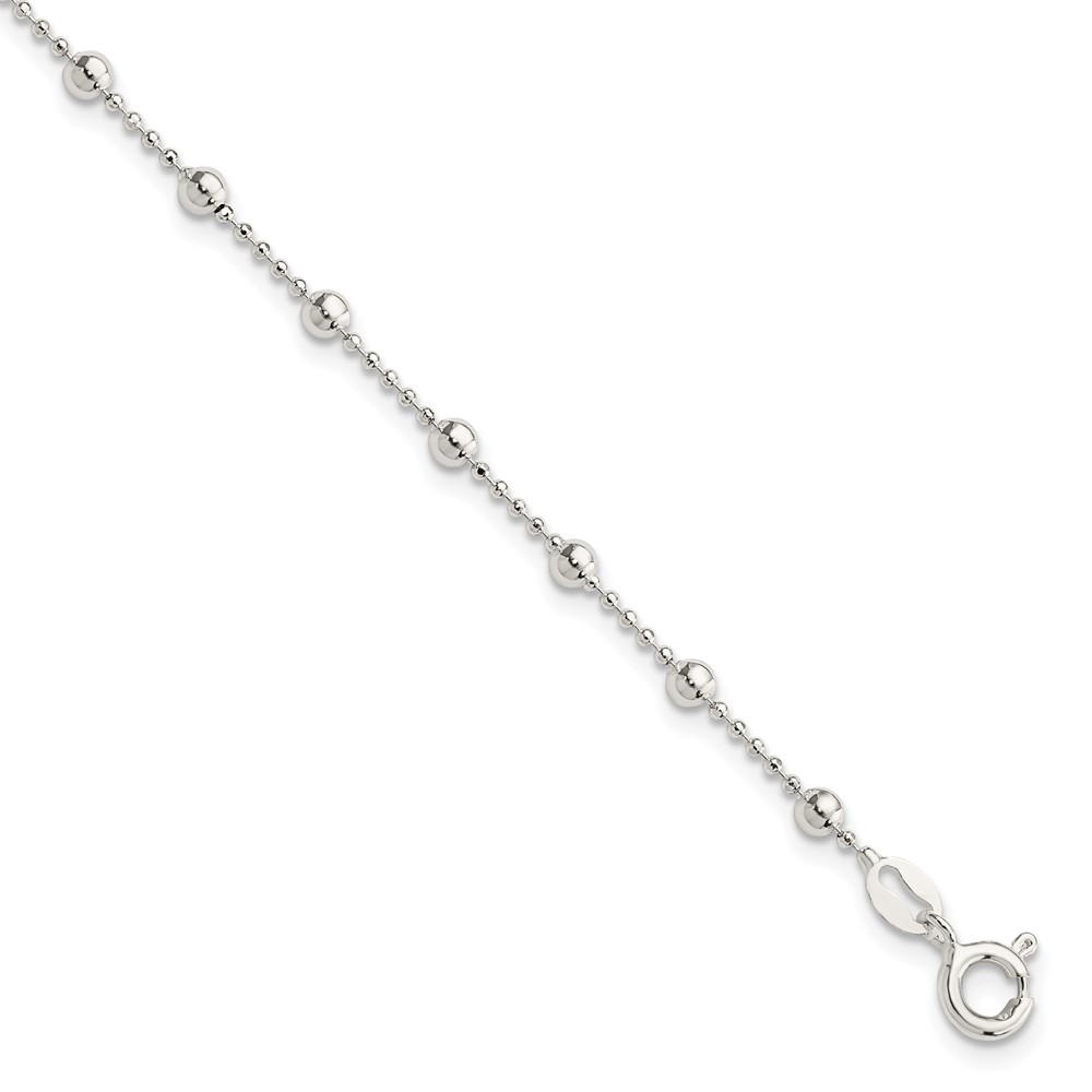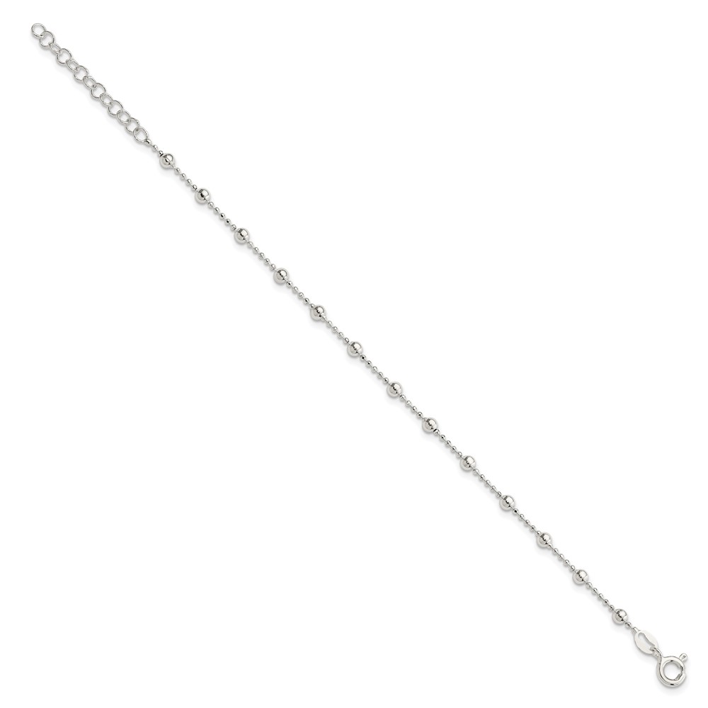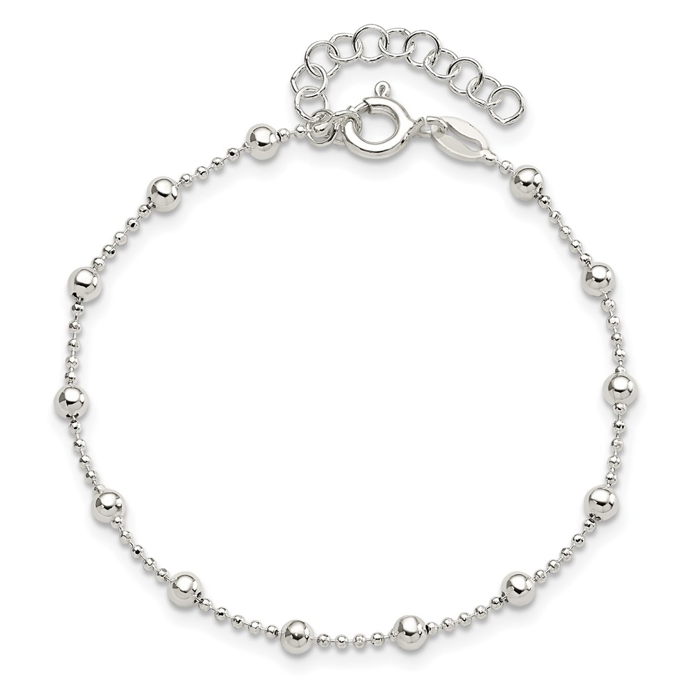 Sterling Silver Polished Beaded 6 Inch with 1 in Ext Bracelet