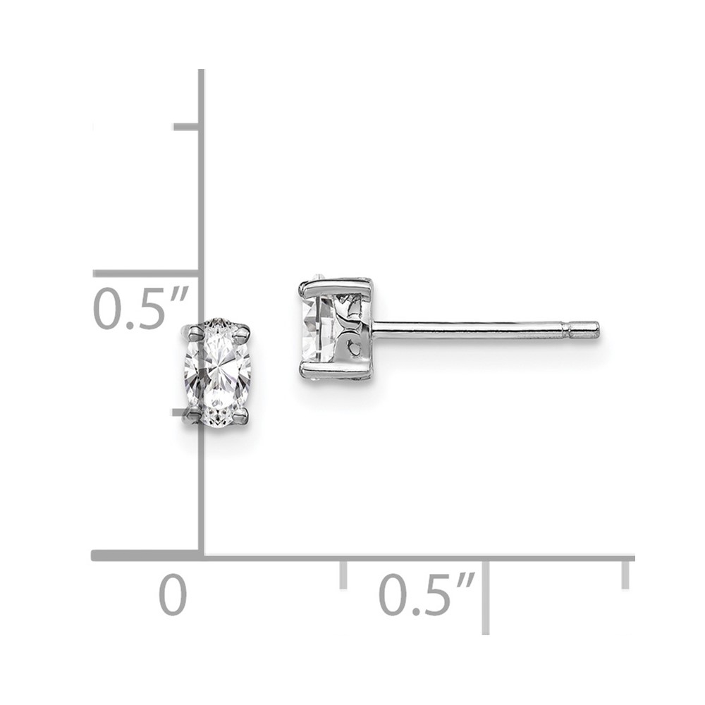 Sterling Silver Rhodium-plated Oval Gemstone Post Earrings
