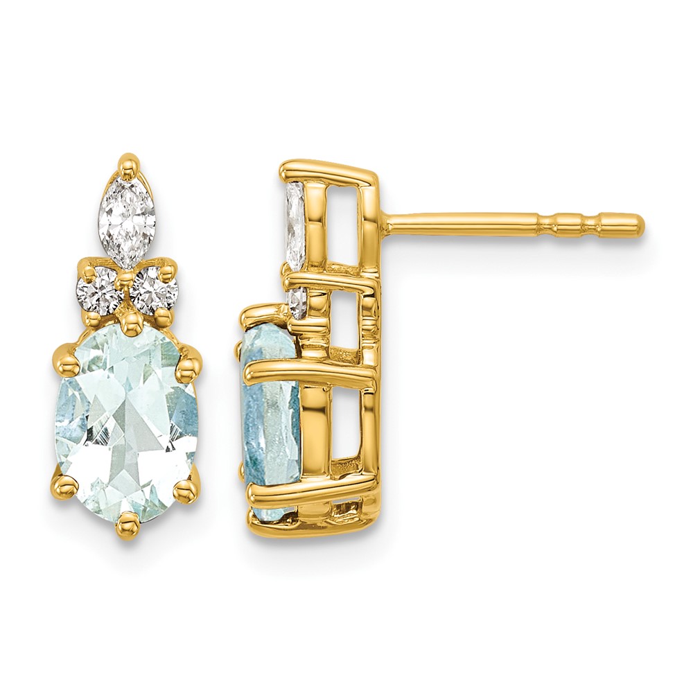 14k Diamond and 7x5 Oval March/Aquamarine Post Earrings