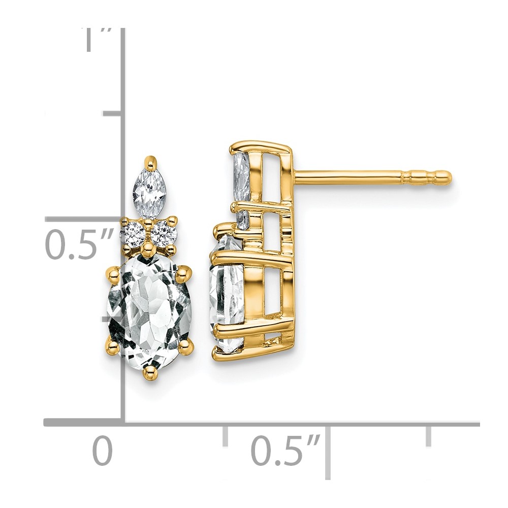 14k Diamond and 7x5 Oval April/White Topaz Post Earrings