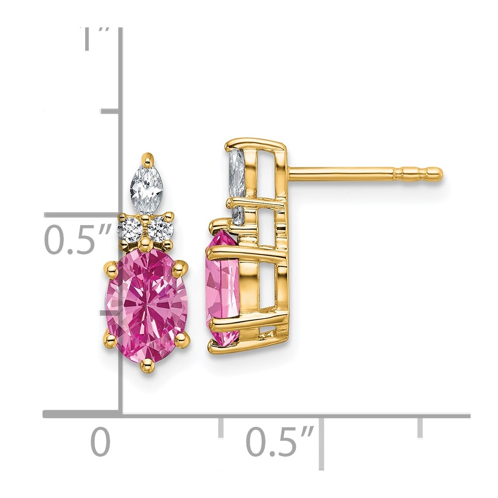 14k Diamond and 7x5 Oval October/Lab Created Pink Sapphire Post Earrings