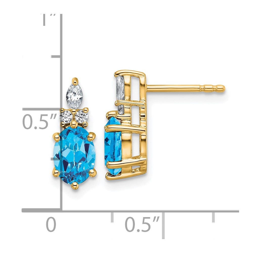 14k Diamond and 7x5 Oval December/Blue Topaz Post Earrings