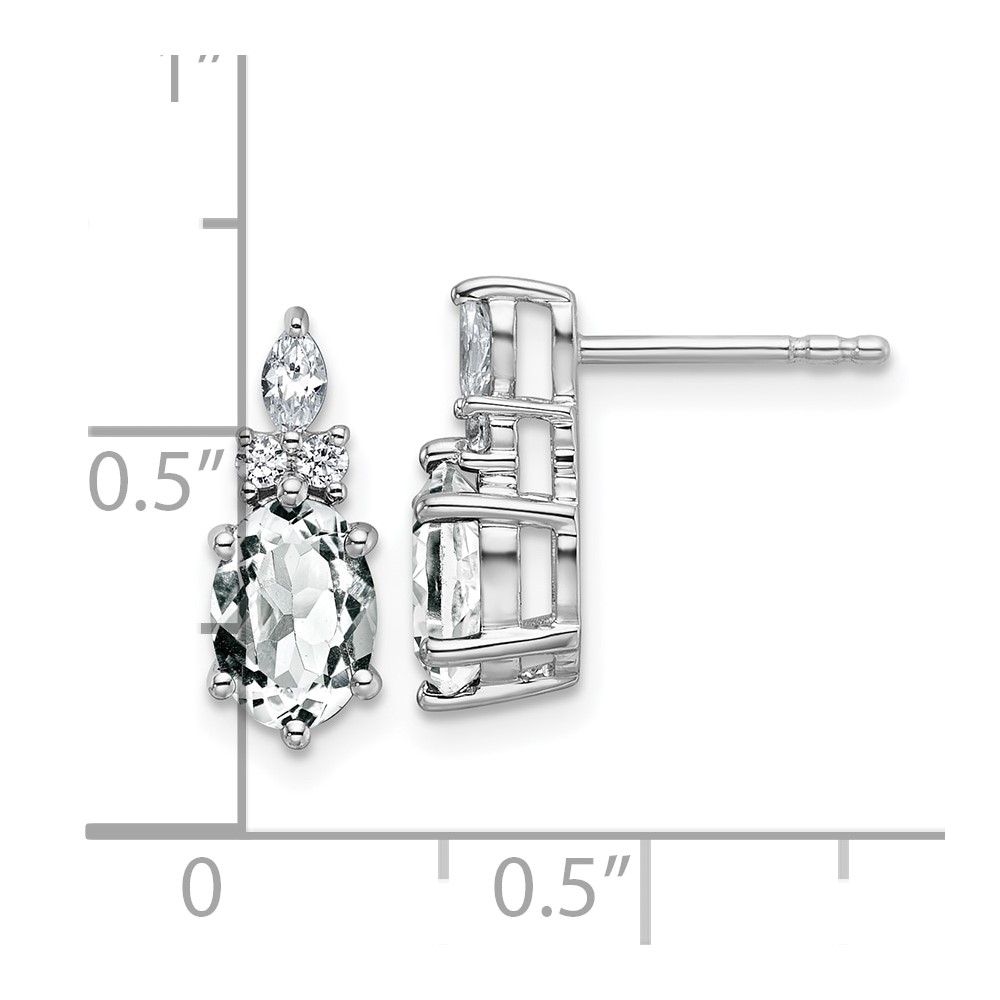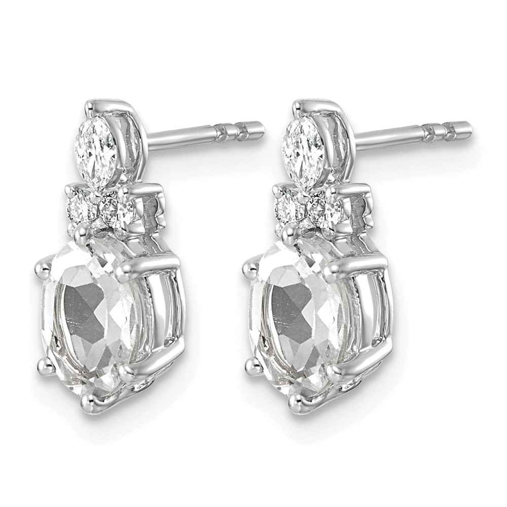14K White Gold Diamond and 7x5 Oval April/White Topaz Post Earrings