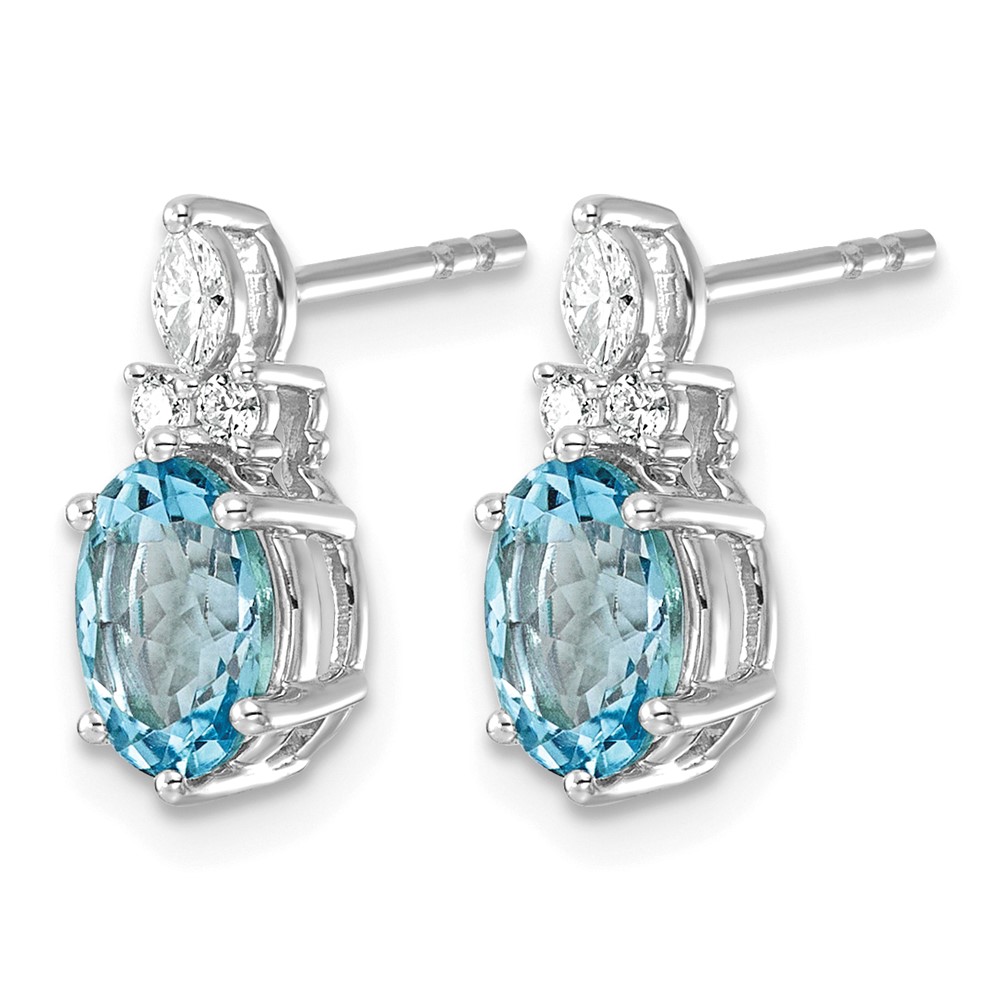 14K White Gold Diamond and 7x5 Oval December/Blue Topaz Post Earrings