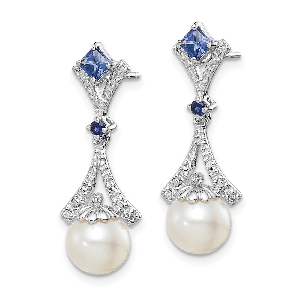 FWC Pearl Created Sapphire Diamond Dangle Post Earrings