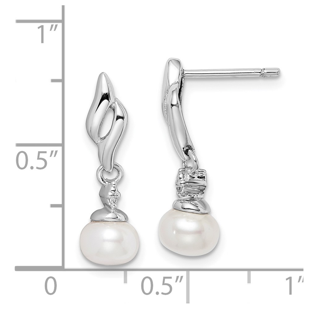 Sterling Silver Rhodium Plated Diamond & FW Cultured Pearl Post Ear