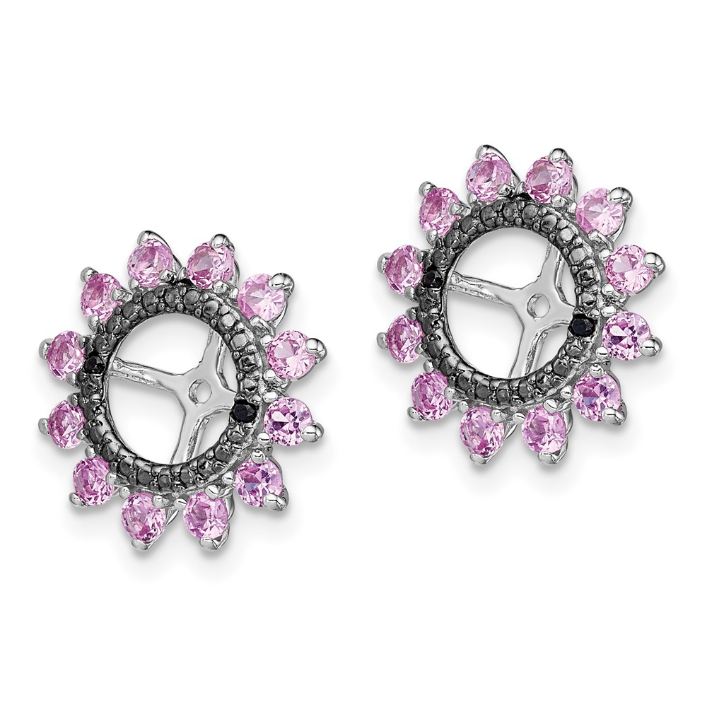 Sterling Silver Rhodium Created Pink Sapphire & Black Sapphire Earring Jack