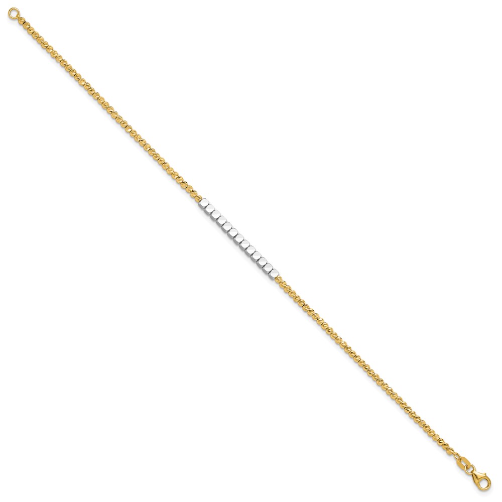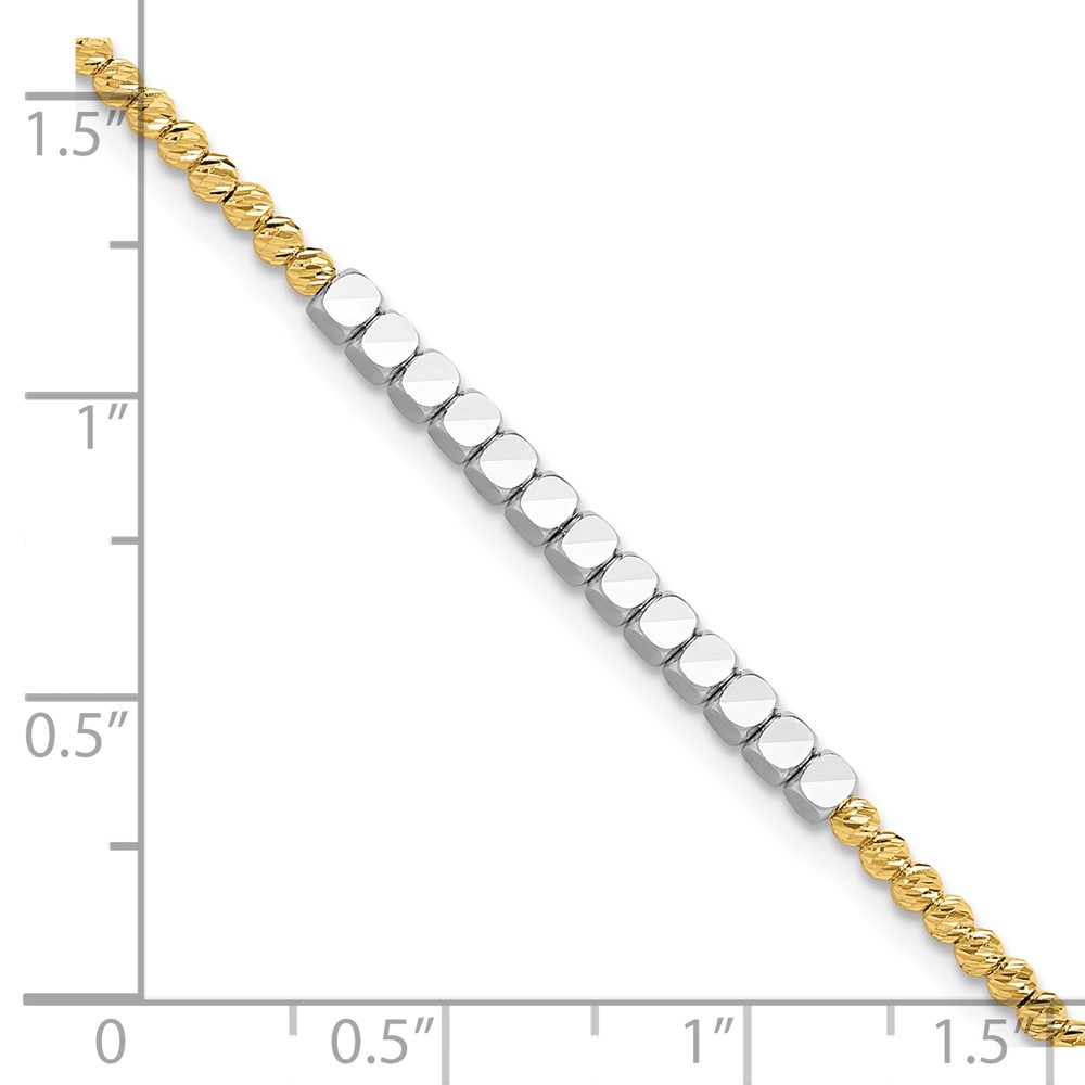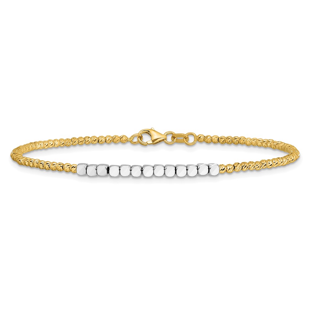 14K Two-tone Diamond-cut Square and Round Beaded 7.5 inch Bracelet