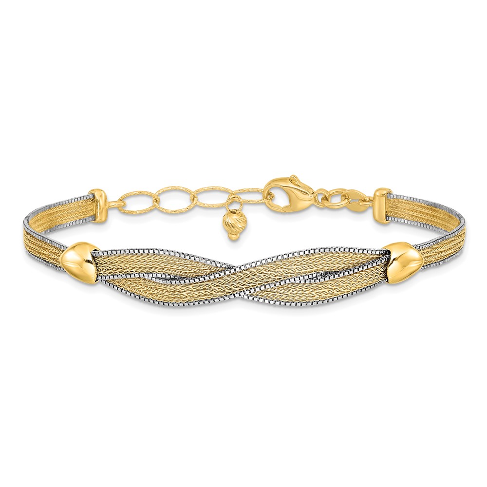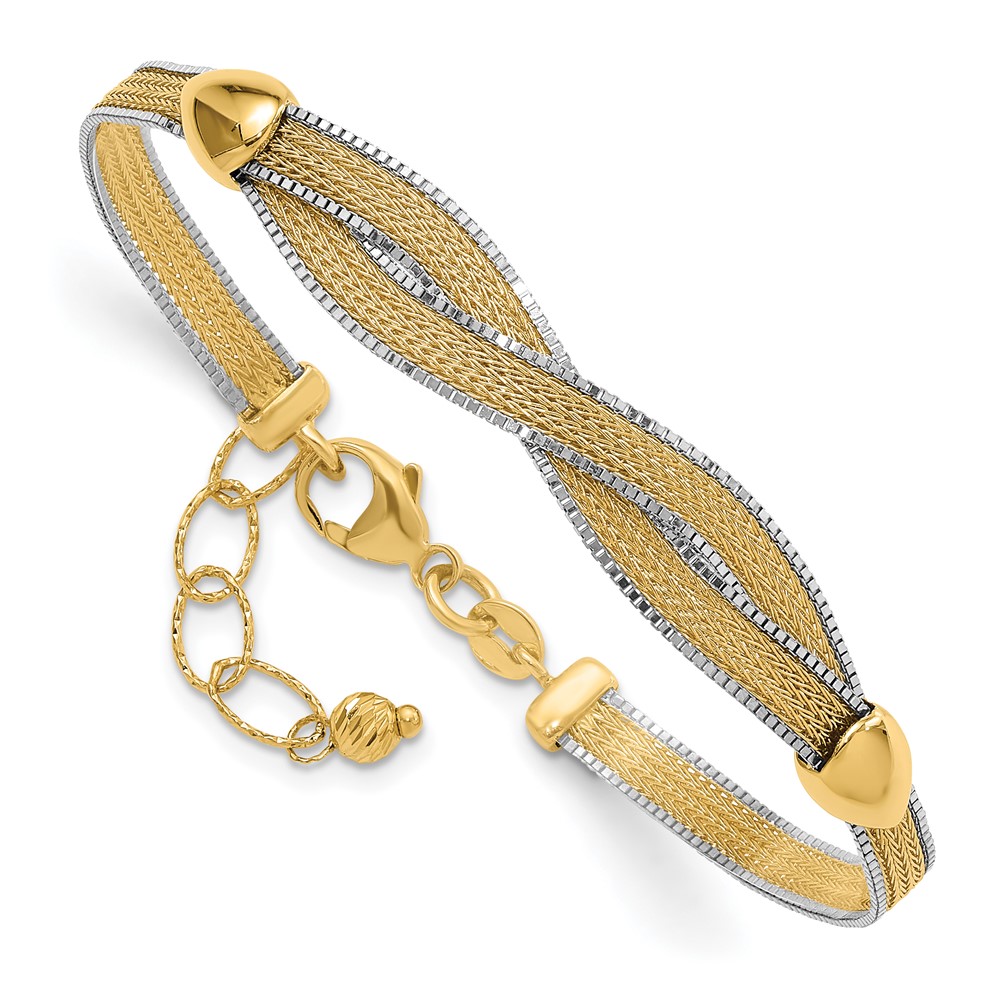 14k Two-tone 6.75in w/1in Ext. Mesh Bracelet