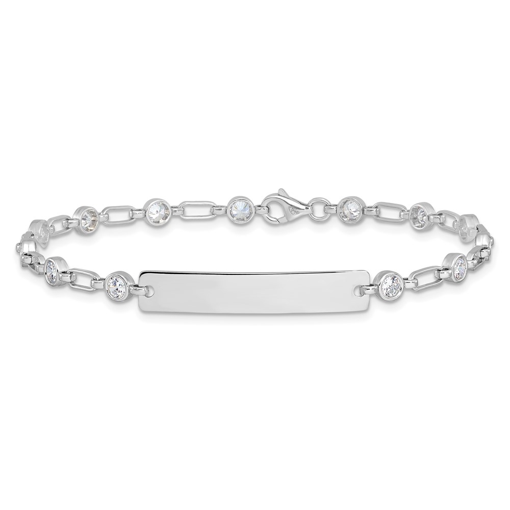 Sterling Silver Rhodium-plated 7.5 inch Bezel CZ ID Bracelet