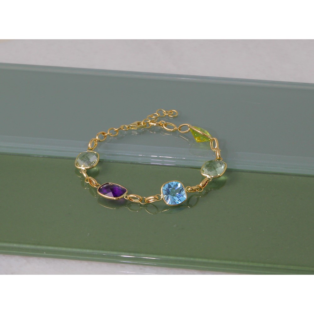 Herco 14K Polished Multi-color Gemstone with 1 Inch Extension Bracelet