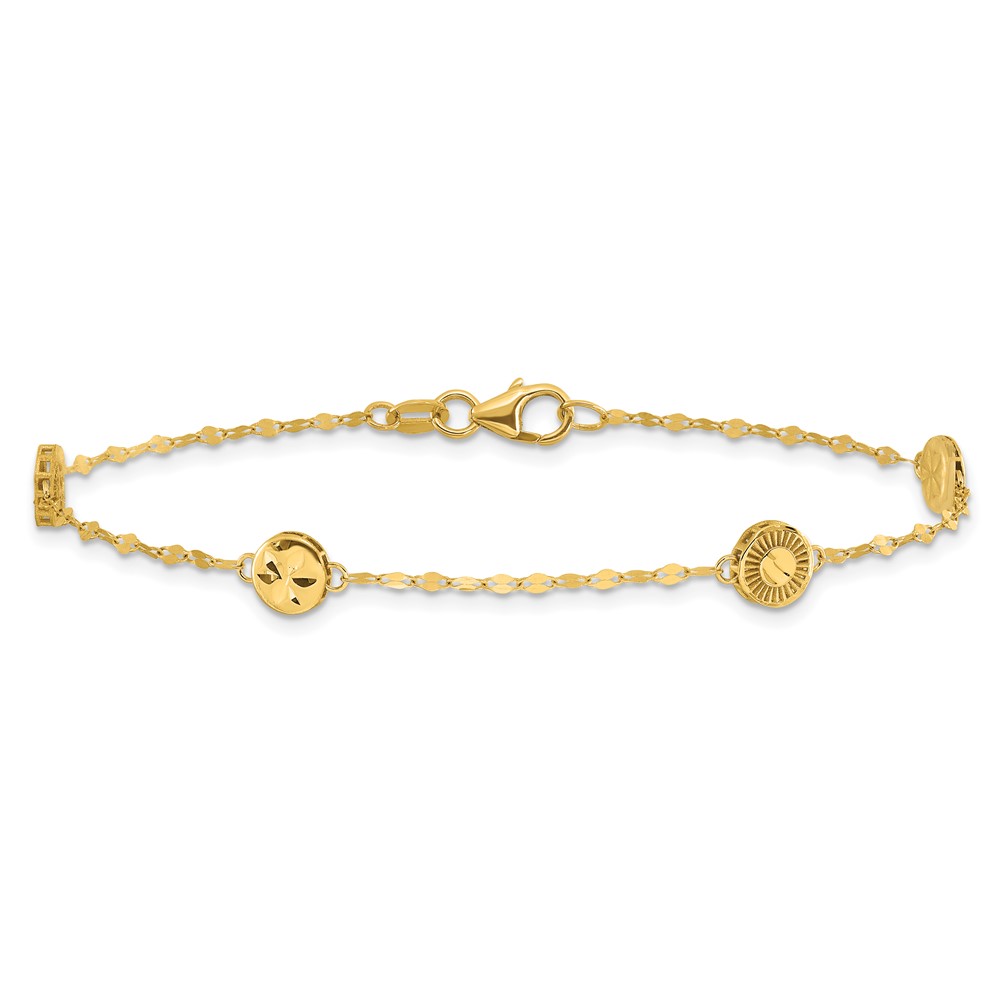 Leslie's 14K Polished and Diamond-cut Disc Design Bracelet