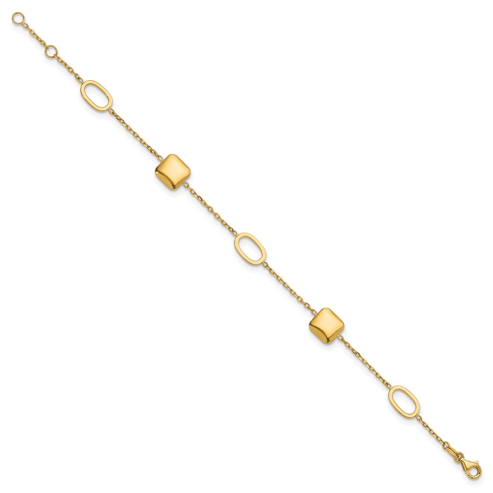Herco 14K Polished Square and Oval Station 7 Inch with .5 Inch Extension Bracelet