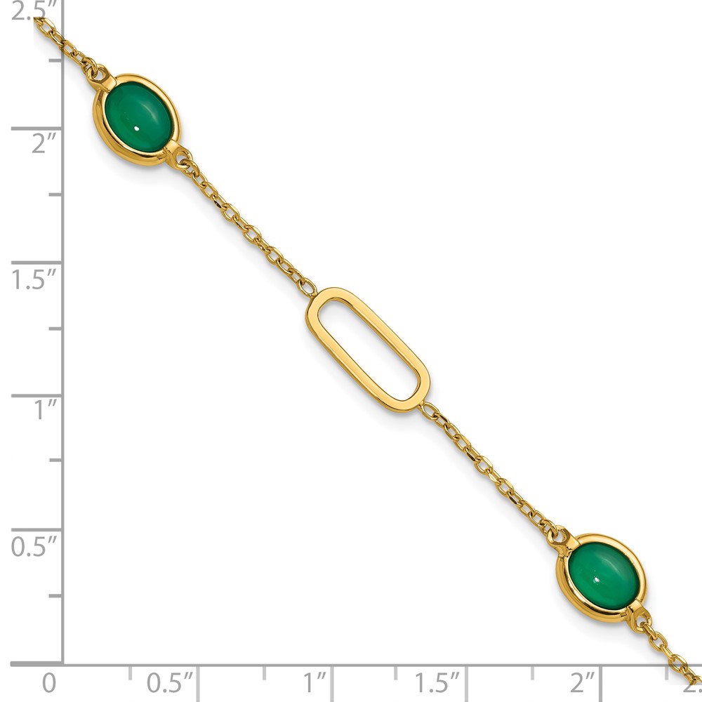Herco 14K Polished Fancy Green Agate Ovals 7 Inch with .5 Inch Extension Bracelet
