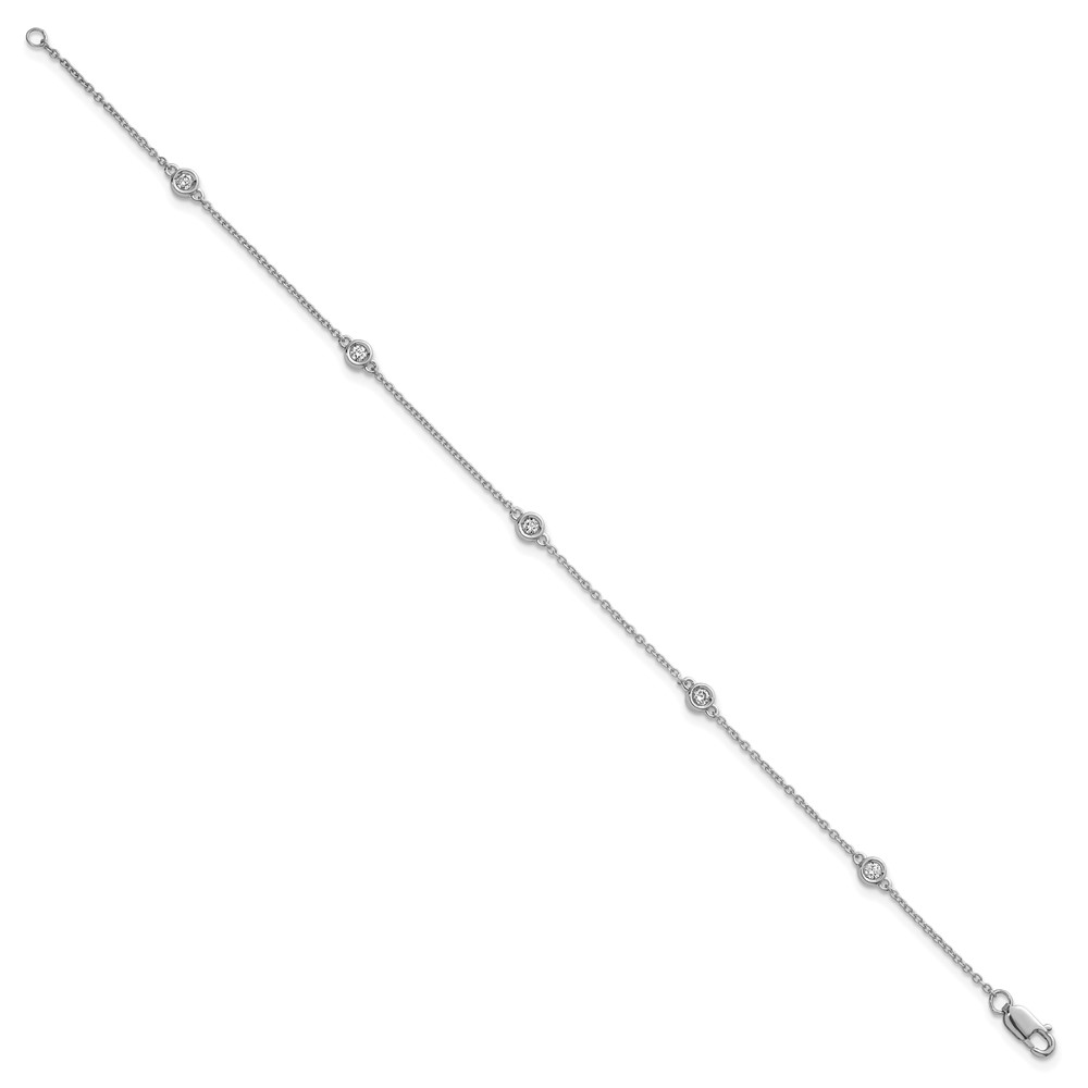 14k White Gold Complete 1/6 carat Bezel-set Diamond and Cable Chain 5-Station 7 inch Bracelet