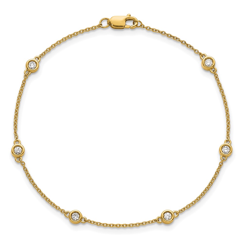 14k Complete 1/5 carat Bezel-set Diamond and Cable Chain 6-Station 7 inch Bracelet