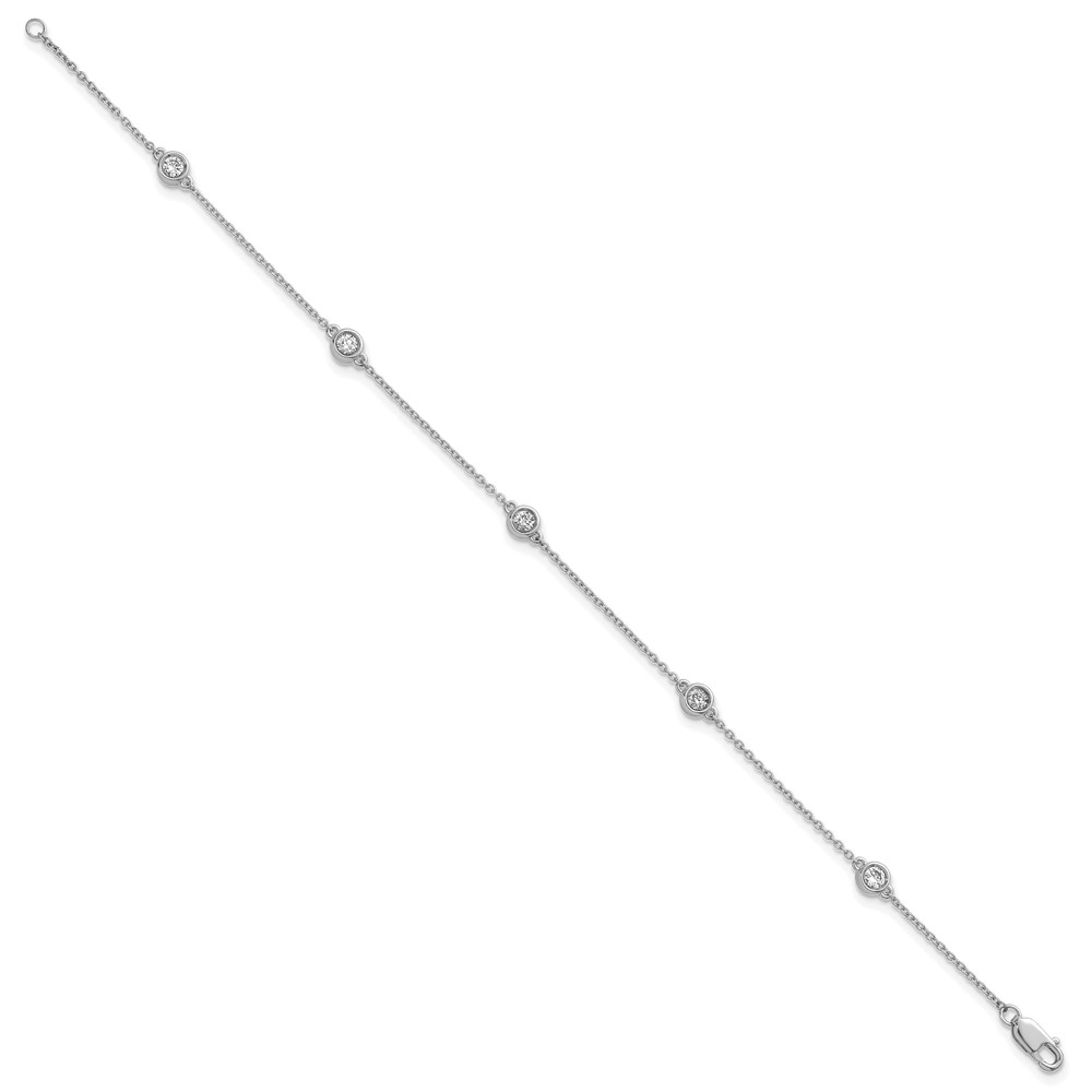 14k White Gold Complete 1/3 carat Bezel-set Diamond and Cable Chain 5-Station 7 inch Bracelet