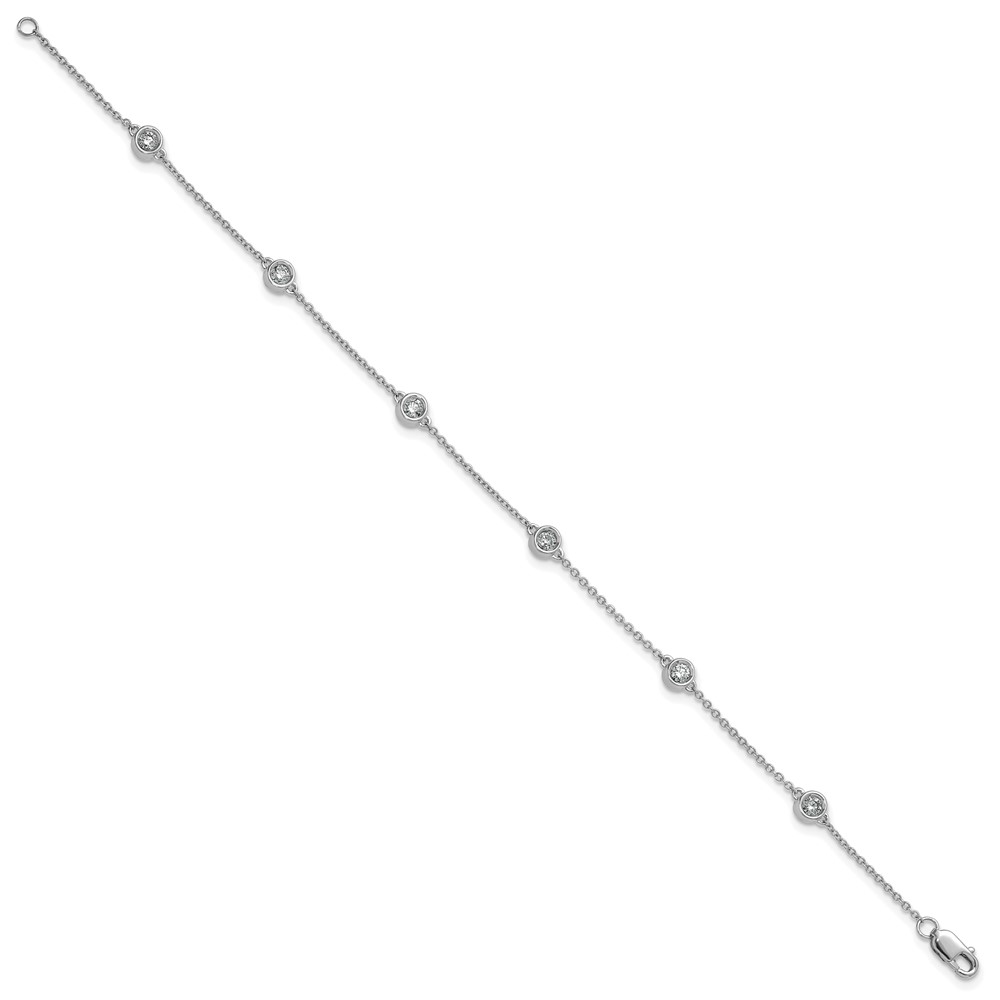 14k White Gold Complete 1/3 carat Bezel-set Diamond and Cable Chain 6-Station 7 inch Bracelet