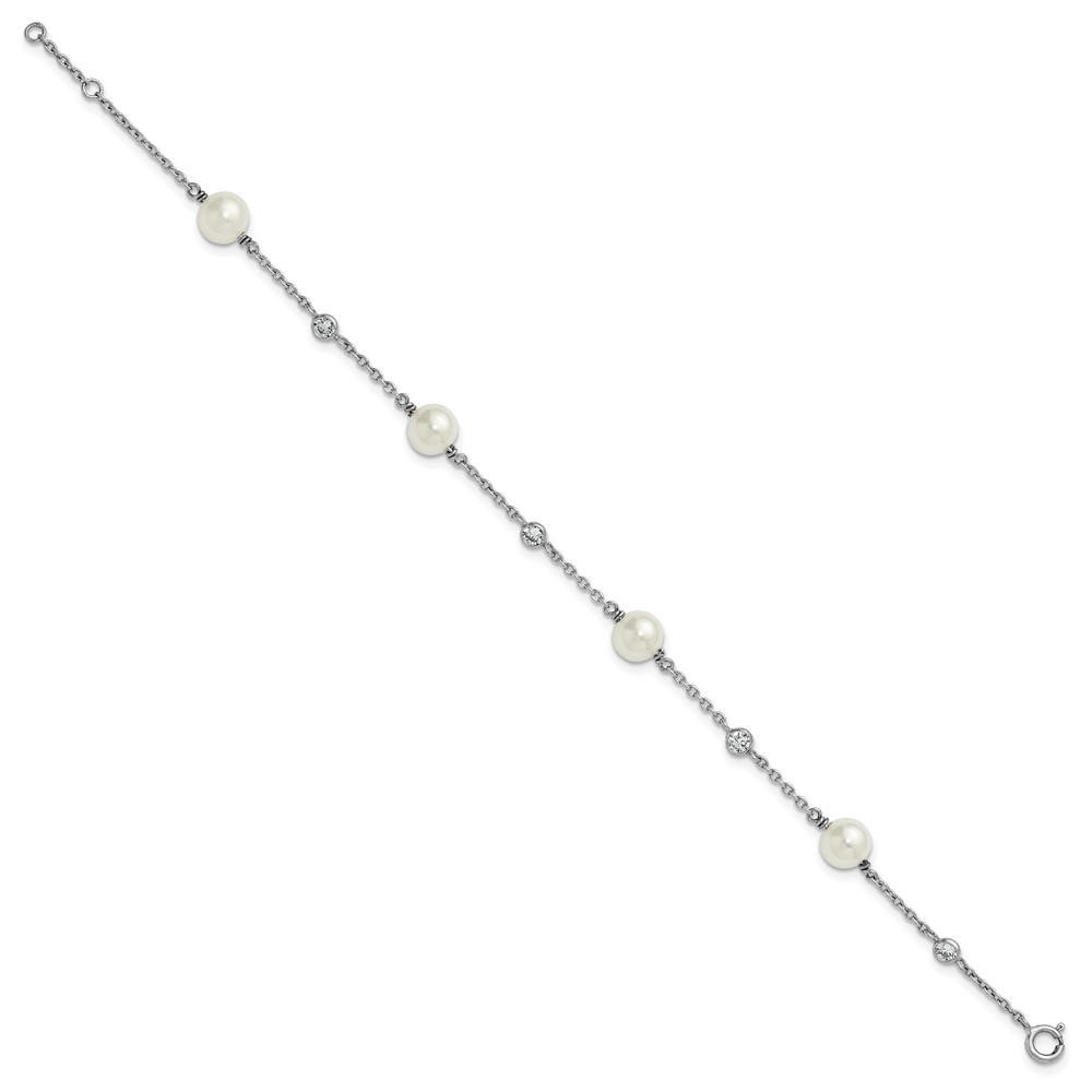 Sterling Silver Rhodium-plated Polished CZ and Shell Pearl 8-Station 7 inch with 0.5 inch Extender Bracelet