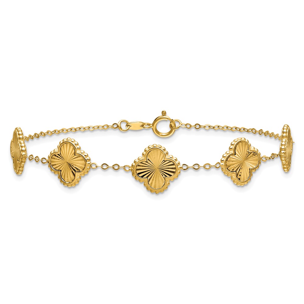 Leslie's 14K Polished and Diamond-cut Clover Station Bracelet