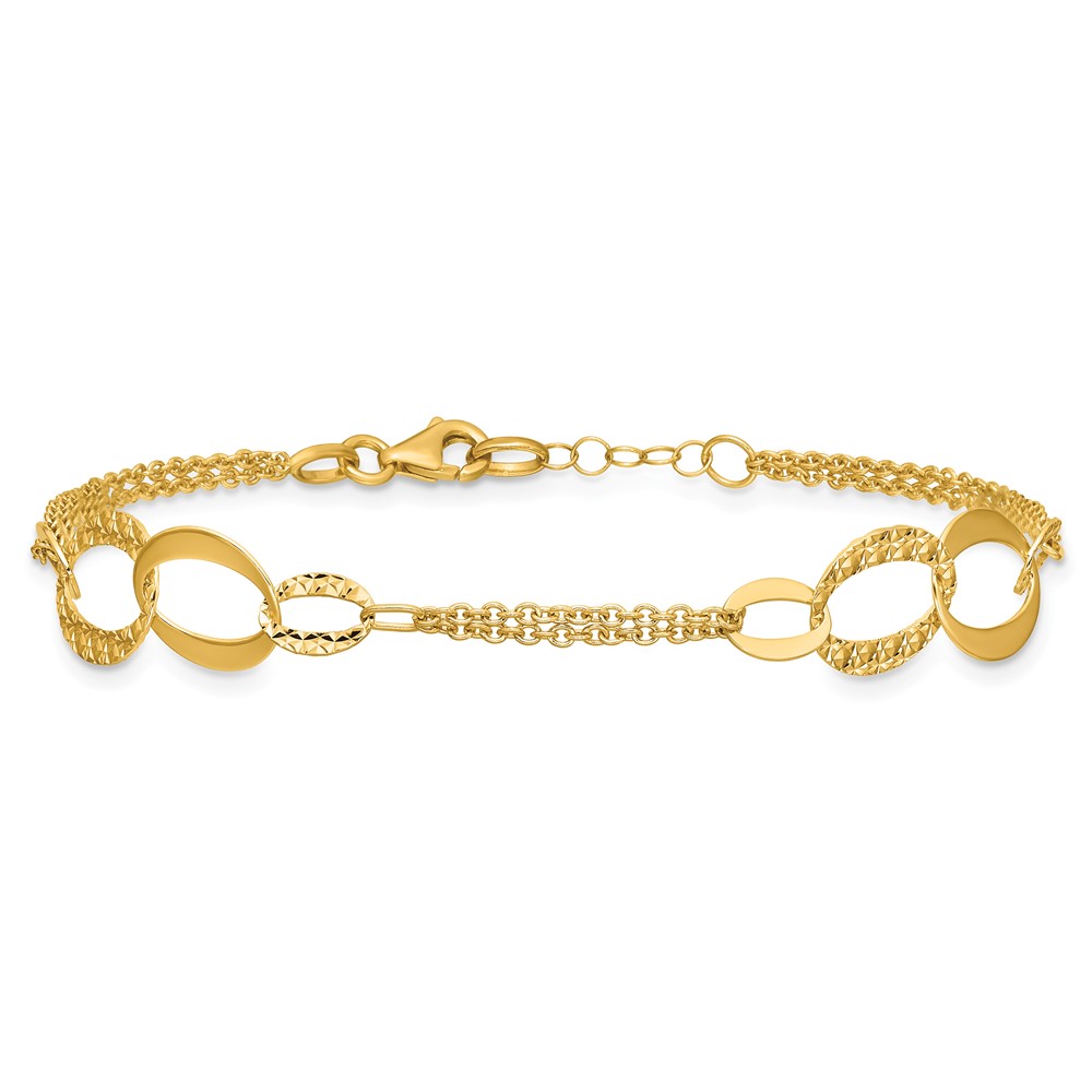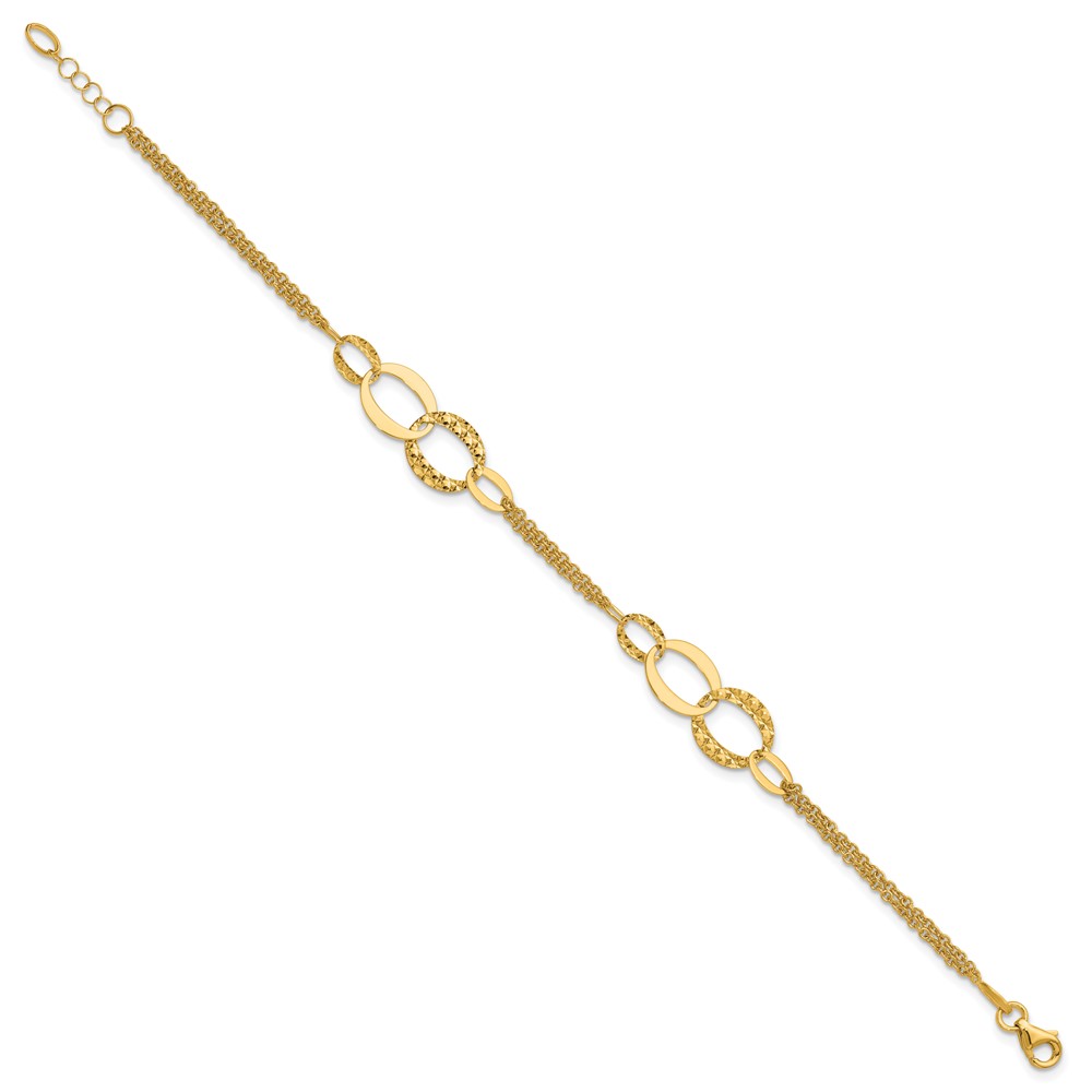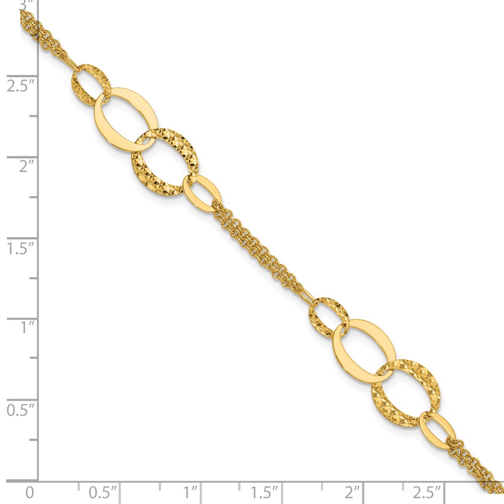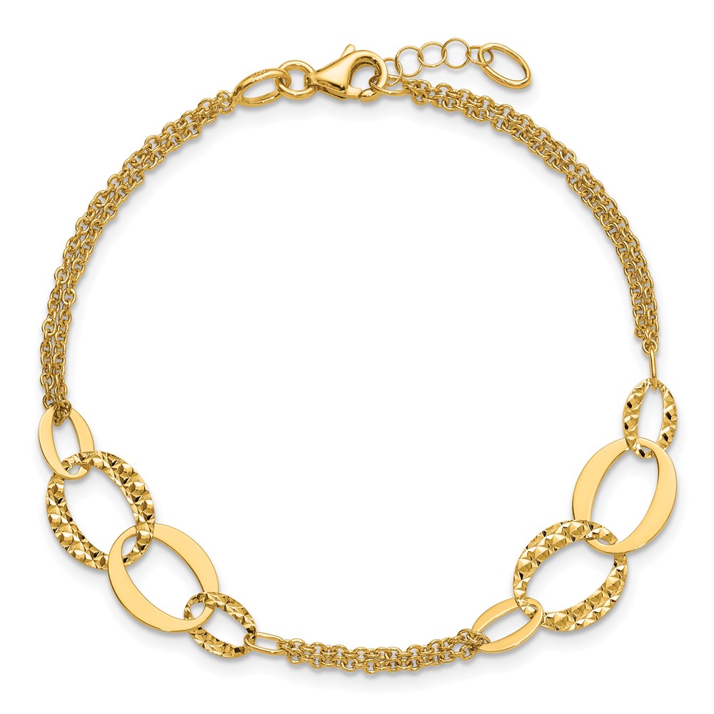 Leslie's 14K Polished and Dia-cut 2-Strand Oval Links w/.5in ext. Bracelet