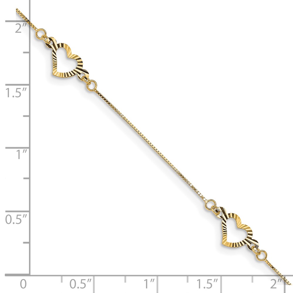 14K Polished 11x18mm Heart and Diamond-cut Beaded 2-Strand 7.5 inch Bracelet