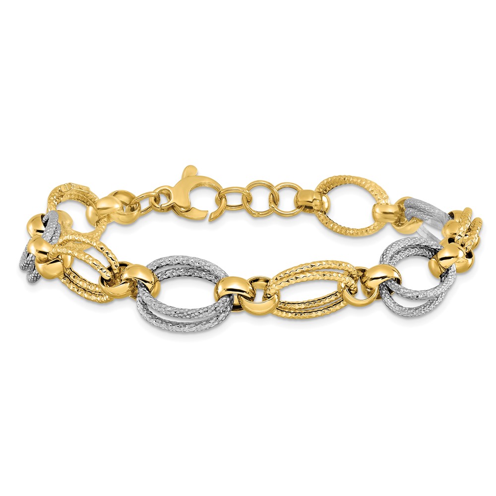 Leslie's 14K Two-tone Polished and Textured Fancy Link Bracelet