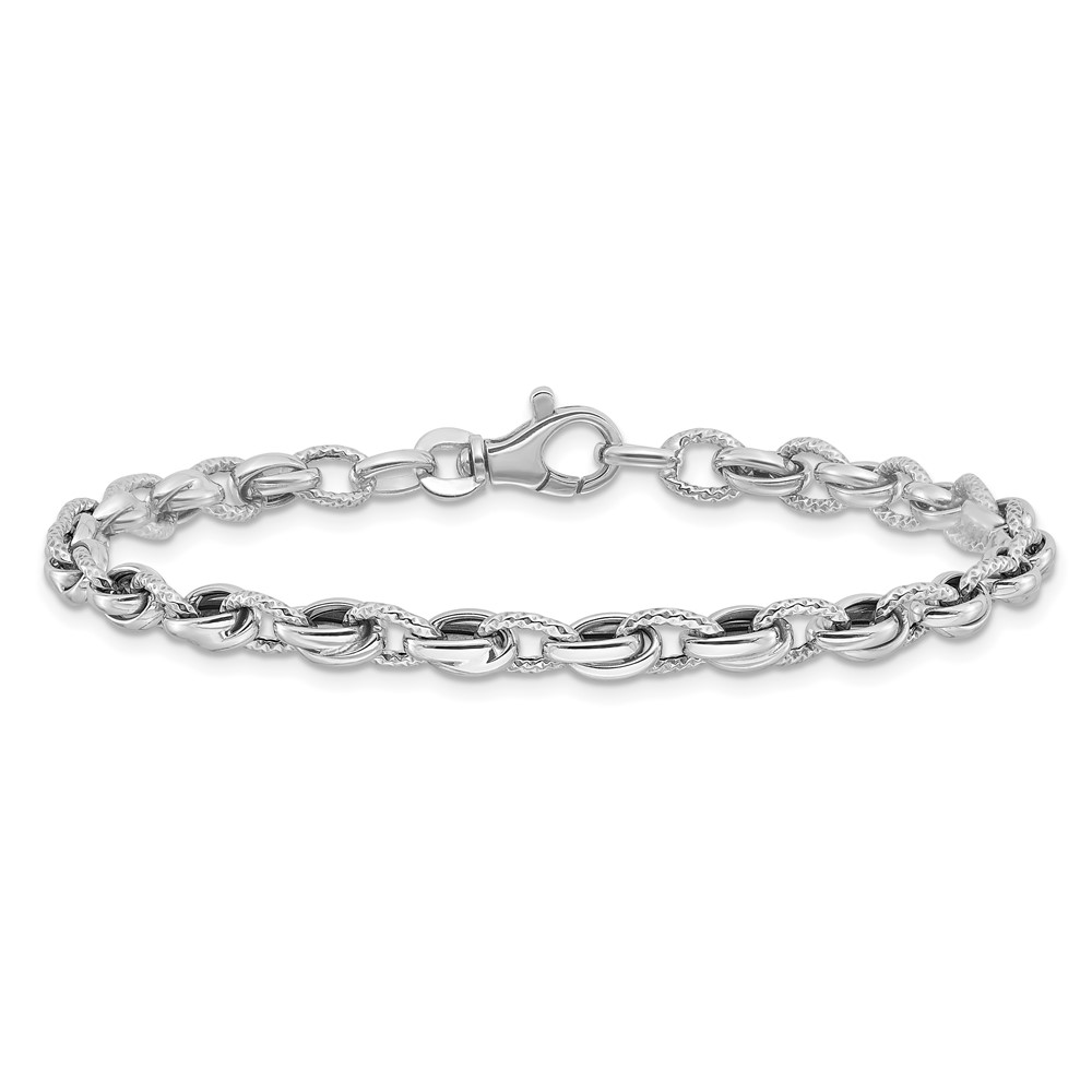 14K White Gold Polished Fancy Link 7.5 inch Bracelet