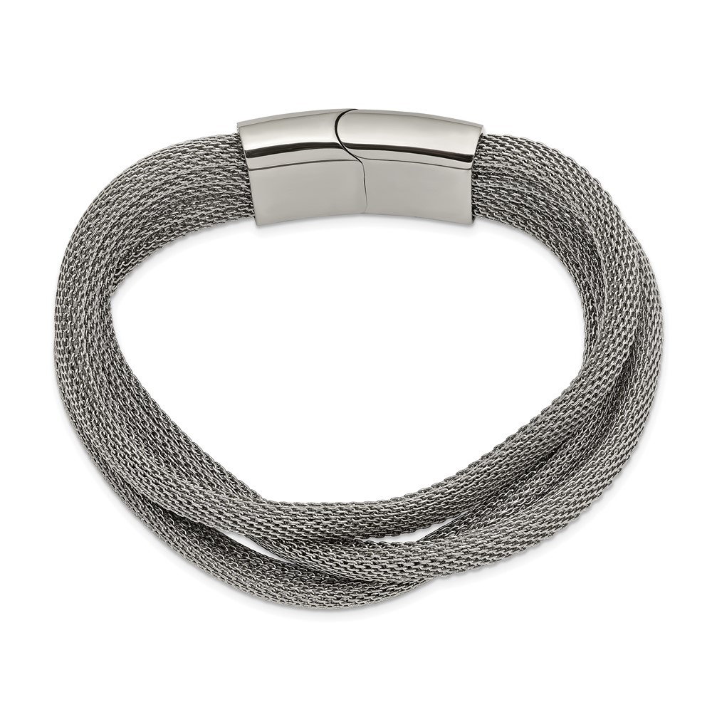 Stainless Steel Polished Mesh 3-Strand 7.5in Bracelet