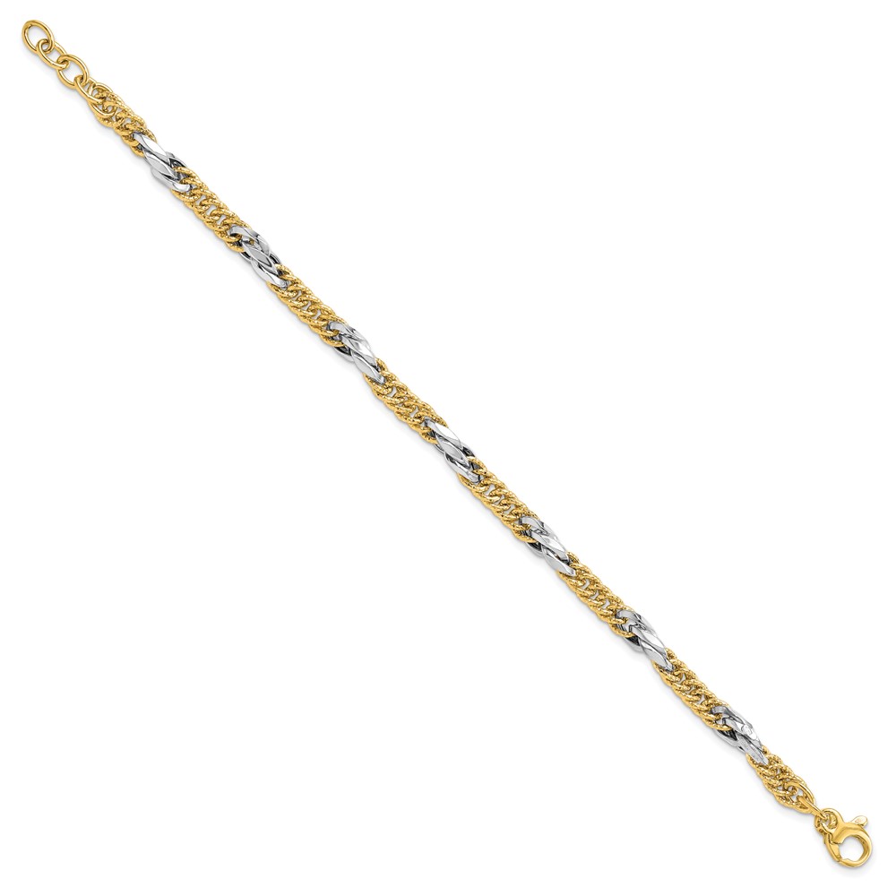 Leslie's 14k Two-tone Polished D/C Link w/ .5in ext. Bracelet