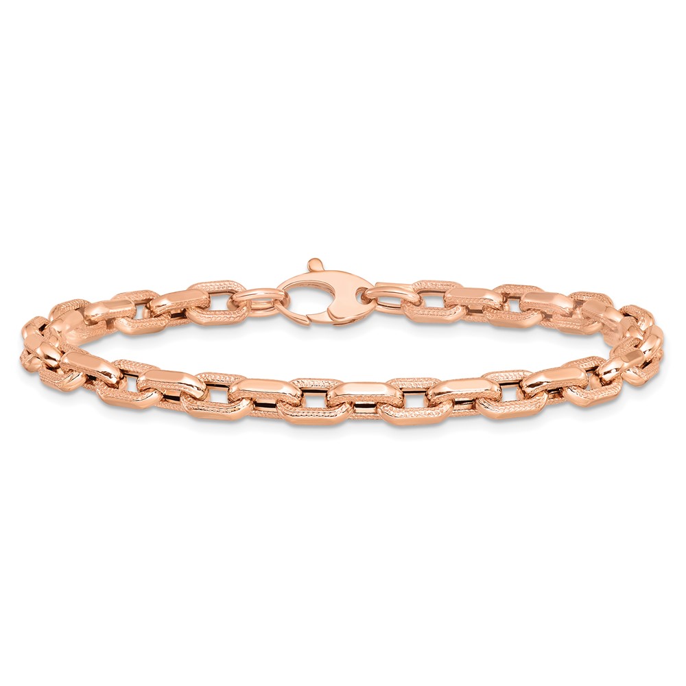 Leslie's 14K Rose Gold Polished and Textured Fancy Link Bracelet