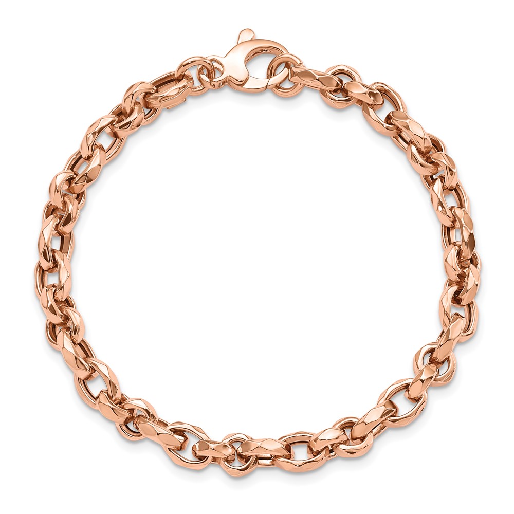 14K Rose Gold Polished 4mm Fancy Faceted Link 7.5 inch Bracelet