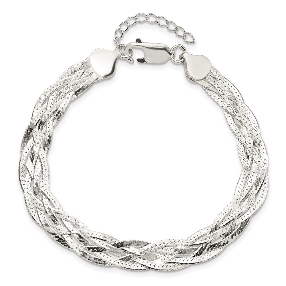 Sterling Silver Polished 5-strd Braided 7in w/1in ext. Bracelet