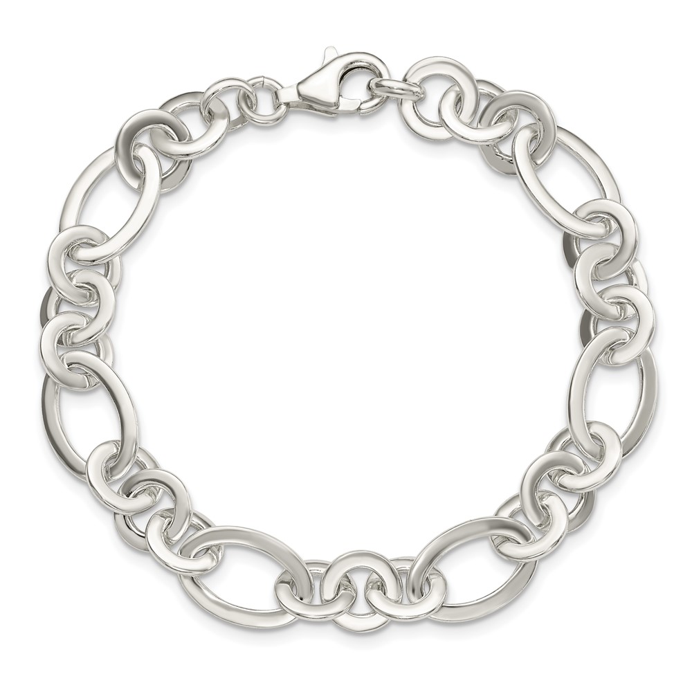 Sterling Silver Fancy Oval and Round Link Bracelet