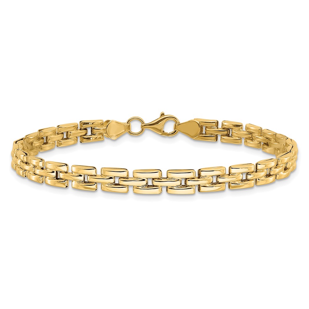 14K Polished 4mm Fancy Paperclip and Puffed Anchor/Mariner Link 7.5 inch Bracelet