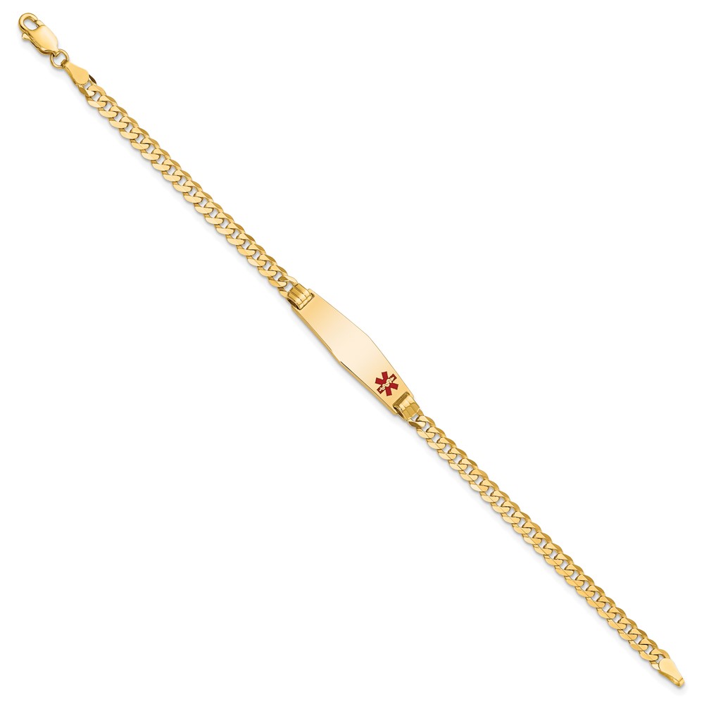 10k Medical Soft Diamond Shape Red Enamel Curb Link ID Bracelet