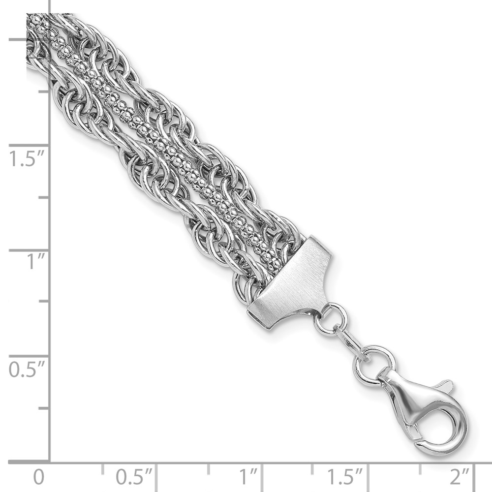 Sterling Silver Rhodium-plated Rope Link Fancy 7in Bracelet